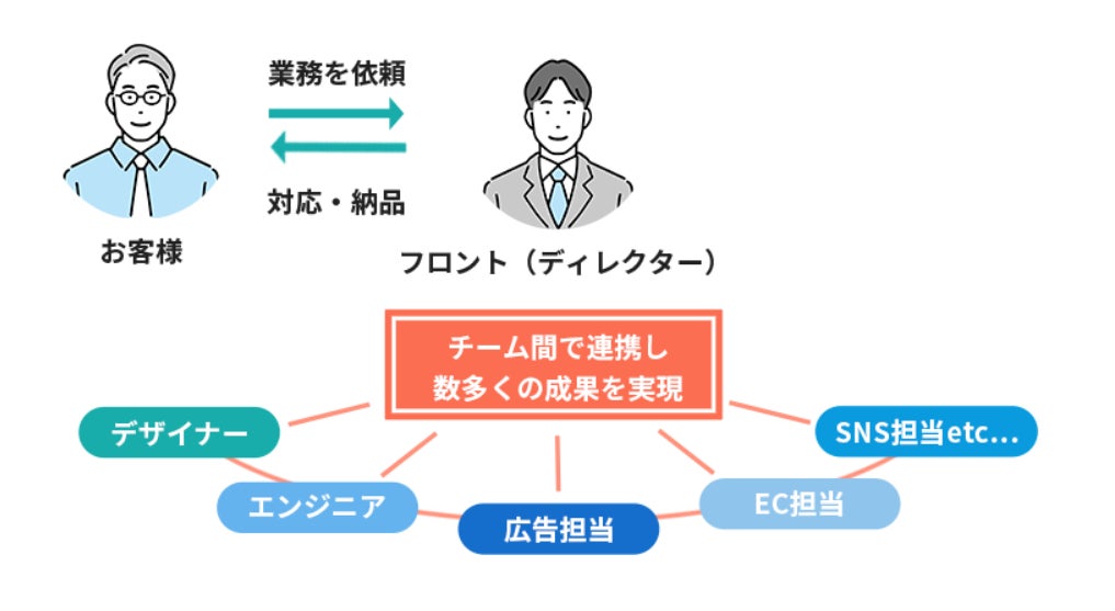 専属の担当ディレクターが間に入ることで各施策の管理ややり取りの手間を省き、各施策に合わせた人材の選定も安心してお任せいただけます。