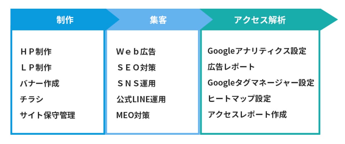 予算や社内リソースの関係でWeb施策を進められなかった企業様のために、Web施策の実行支援をメインとしたサービスをリリースする運びとなりました。