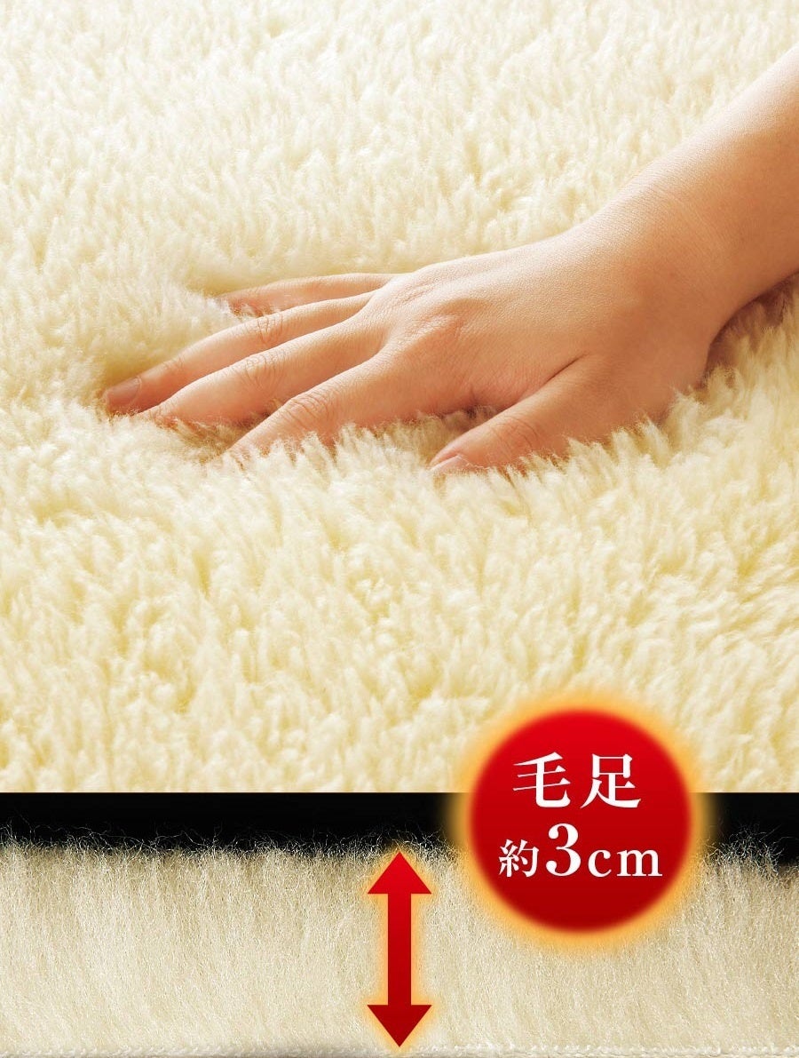 ザ・プレミアム・ソフゥールの毛足は暖かさと寝心地を考慮し、約30mmに設定しました。短すぎると暖かさに欠け、長すぎると寝心地が悪くなるため、暖かさと柔らかさが絶妙になるよう毛足の長さにもこだわりました。また柔らかさを損なわないように注意し、暖かさを外に逃がさない絶妙な毛密度に設定しています。