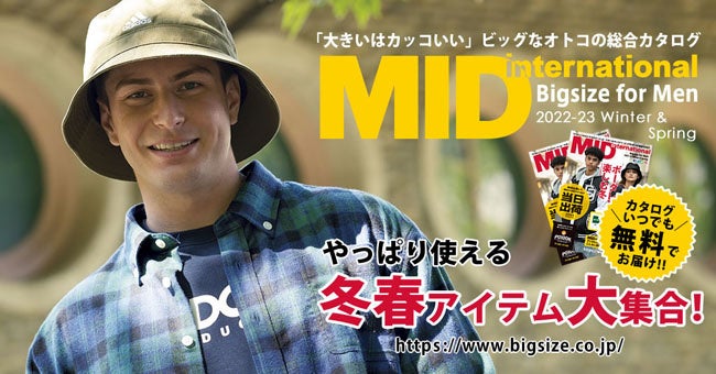 創業27年目を迎える大きいサイズのメンズ服専門店ミッド・インターナショナルは「大きいはカッコいい」をテーマに~10Lサイズまでの冬春新作アイテムが掲載されたカタログを発刊。