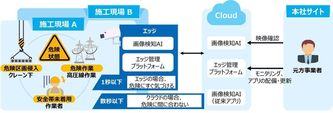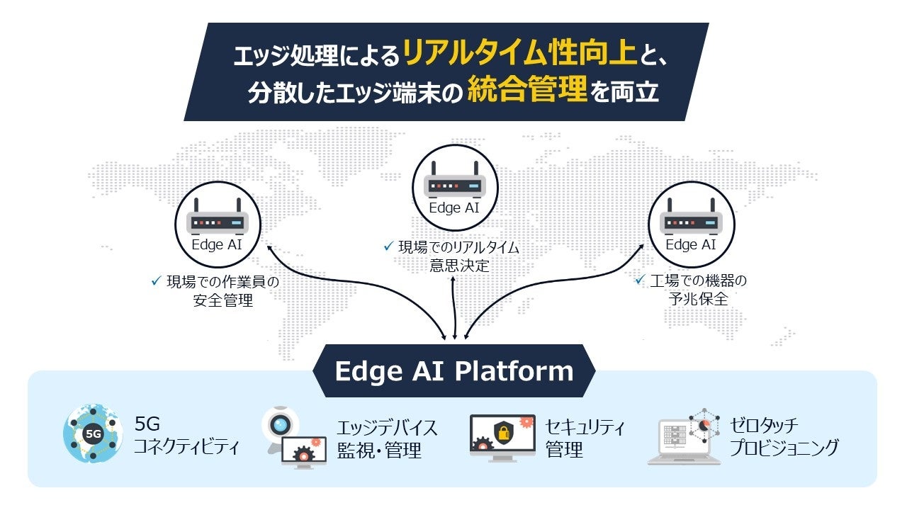 近年、工場、倉庫や店舗・工事など作業現場でのAI活用を実現するエッジAIへの注目が高まっています。エッジAIは応答速度の速さや、情報を保護しやすい利点があることから、よりリアルタイム性や機密性が求められる現場での活用が期待されています。一方で、デバイスの複雑な設定を行うために現地へ専任者が出向く必要がある、管理・運用・メンテナンスが煩雑、などの課題が指摘されています。