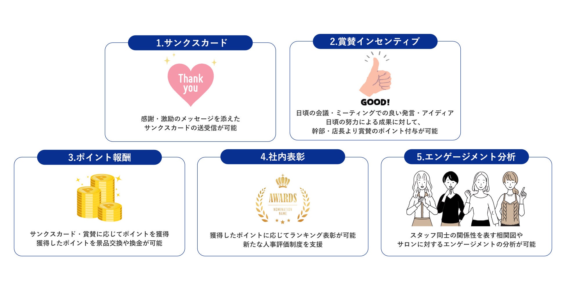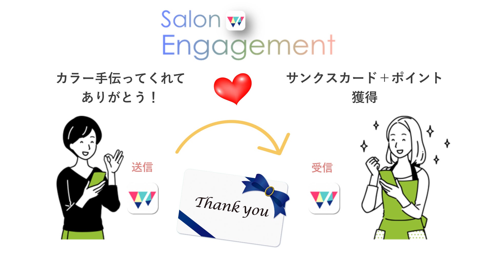 この課題を解決すべく、当社では日頃のサロンワークにおいて、一緒に働く仲間に対し感謝や賞賛の気持を届けることを可能にした『Salon Engagement(サロンエンゲージメント)』をリリースいたしました。