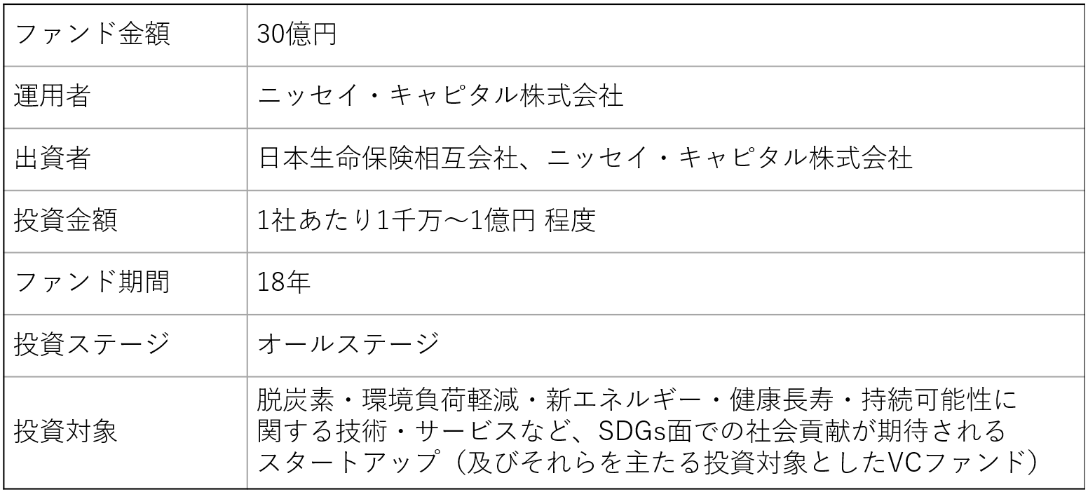 ニッセイ・キャピタル サステナビリティ課題解決ファンド1号の設立のお知らせ