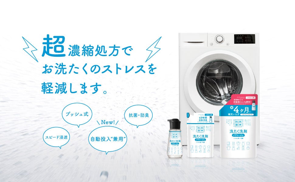 簡単プッシュボトル+自動投入機能付き洗濯機対応でさらに便利に