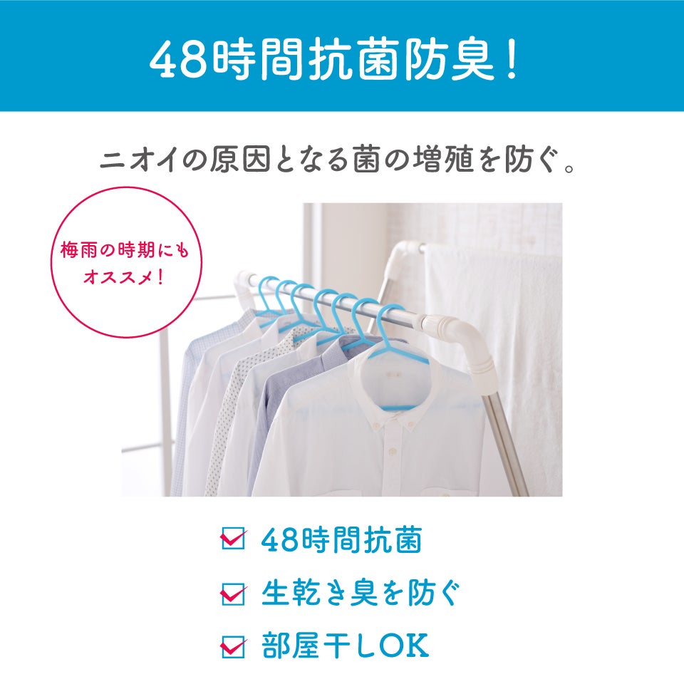●48時間抗菌・防臭。生乾き臭を防いで部屋干しにも最適。