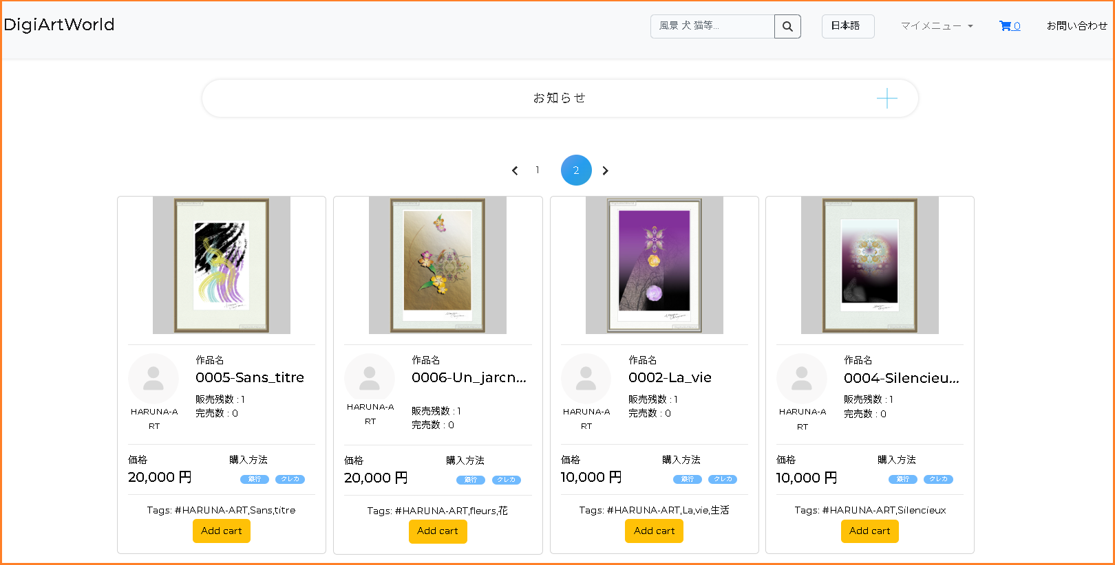 Digital Art World 2 はデジタルデータとして作られた作品の販売を行う専用サイトです。