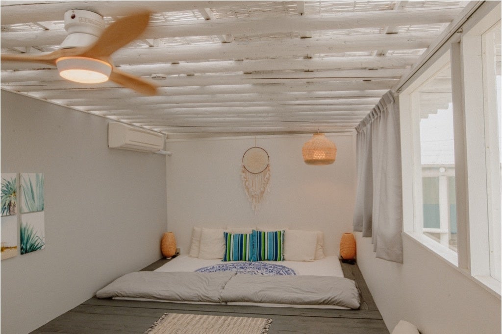 約800坪の白い砂浜に3棟だけ設置され、マリブカラーで統一された家具とシーリングファンがL.A.気分を盛り上げる独立型コテージとなってます。