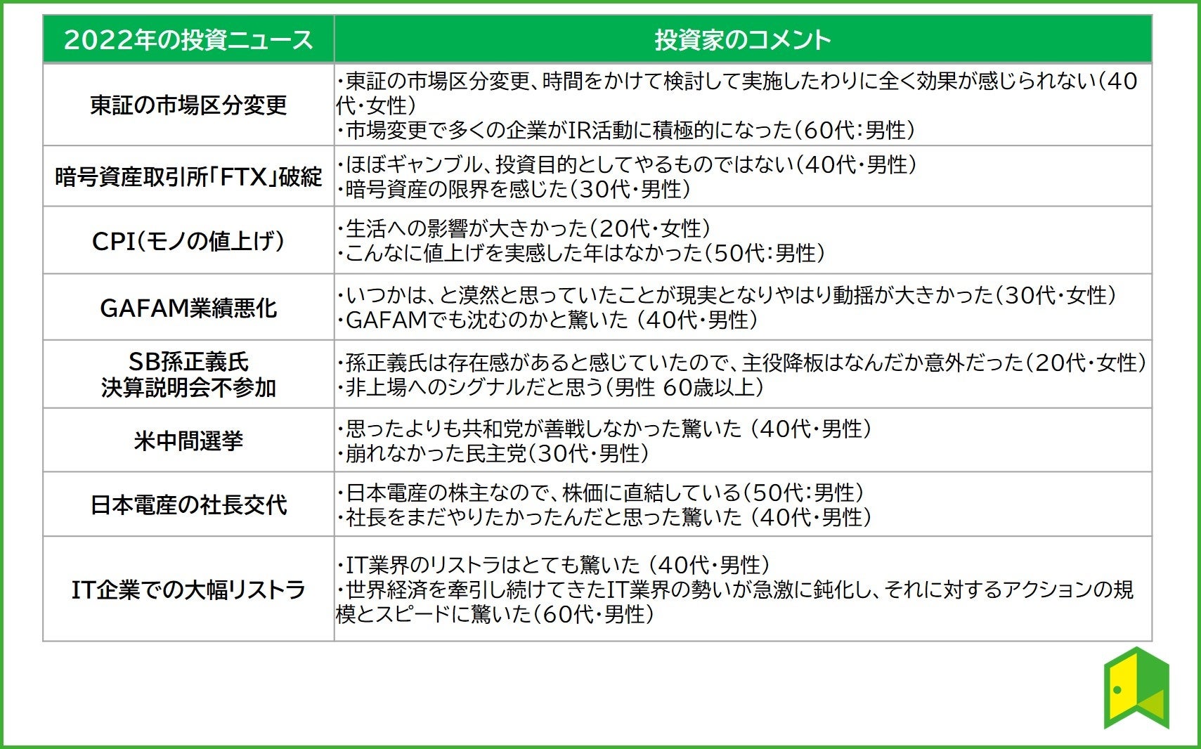 「2023年に注目したい投資トピック」に対する投資家のコメント
