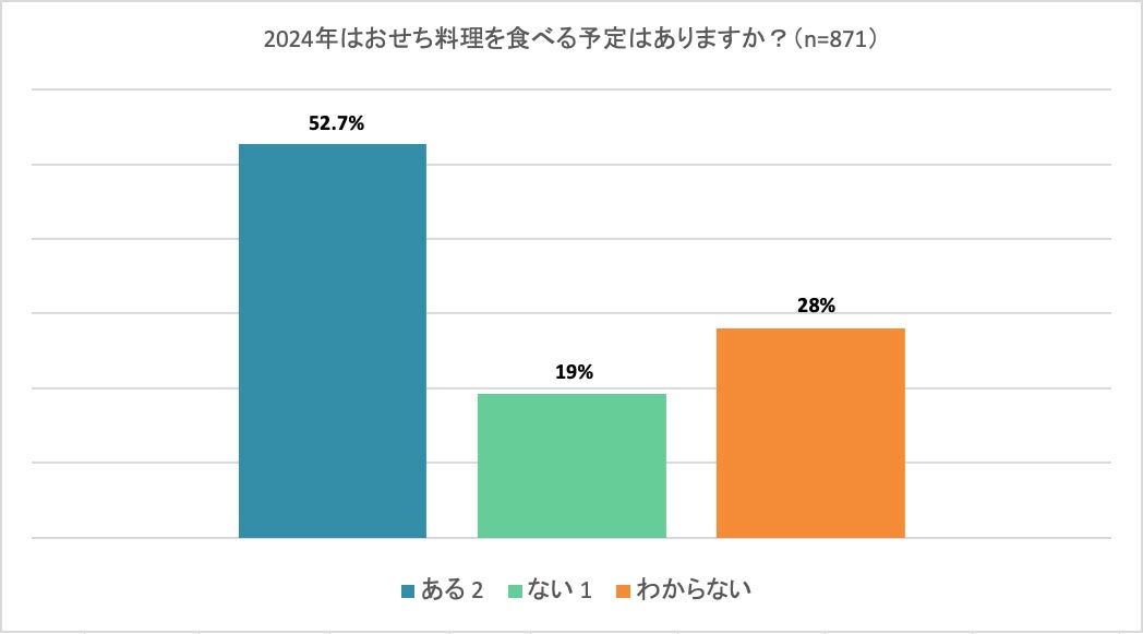 〇約53%の人がお正月におせち料理を食べる予定があると回答!(SA N=871)