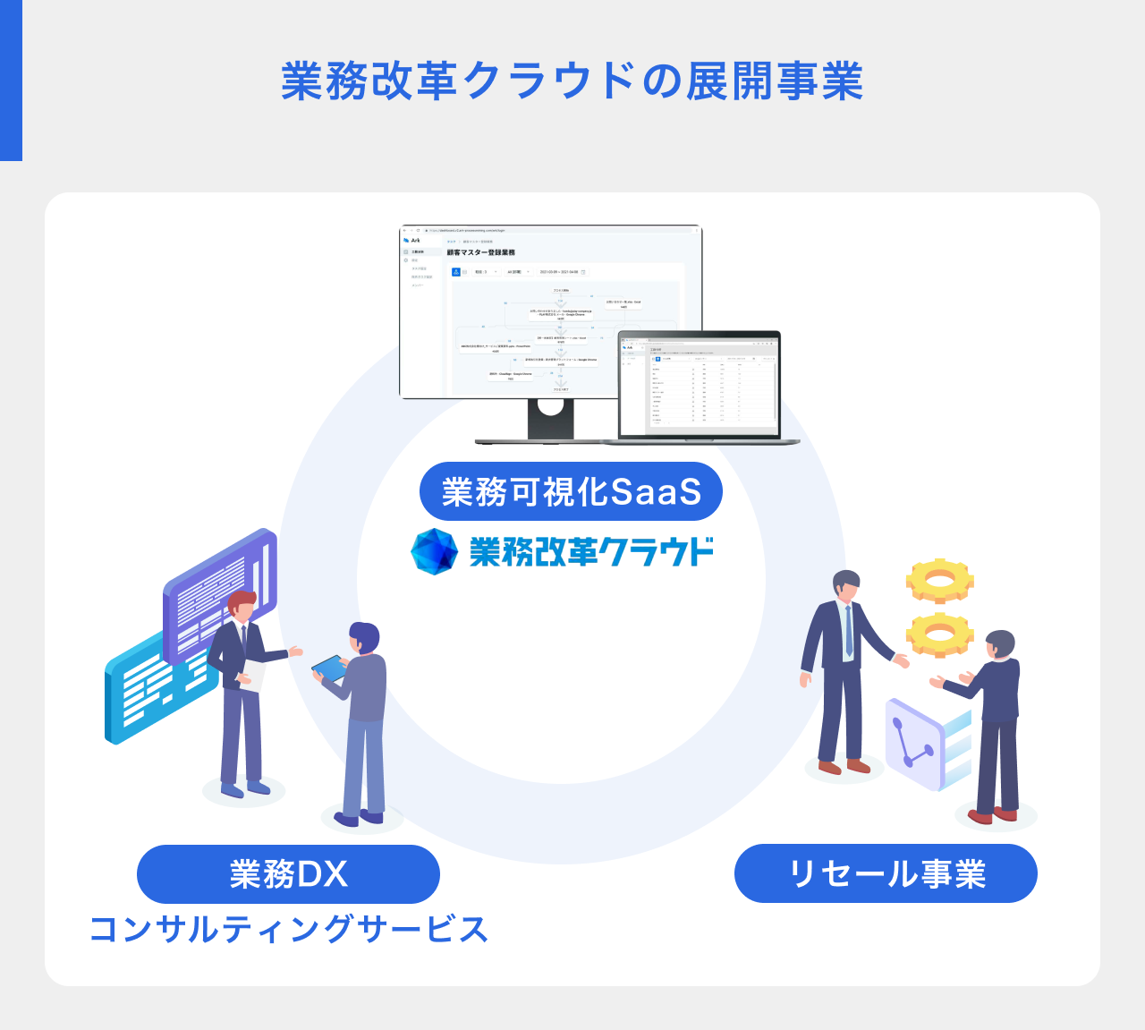 事業内容:業務改革クラウドの開発・オフィス業務自動化コンサルティング・ソフトウェア開発