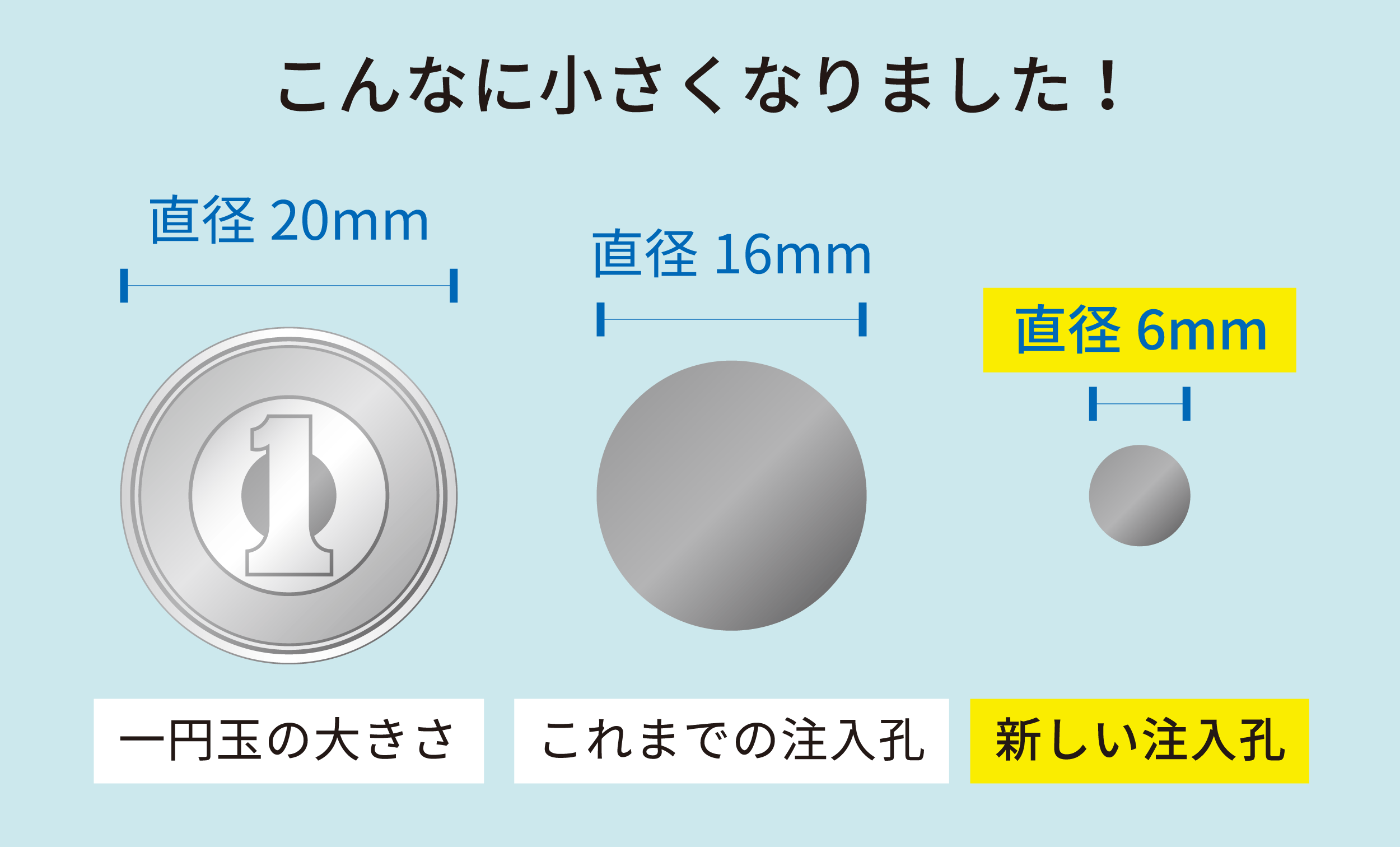 注入孔を6mmへ変更することによりこれまで寄せられた下記のようなお悩みを解決できます。