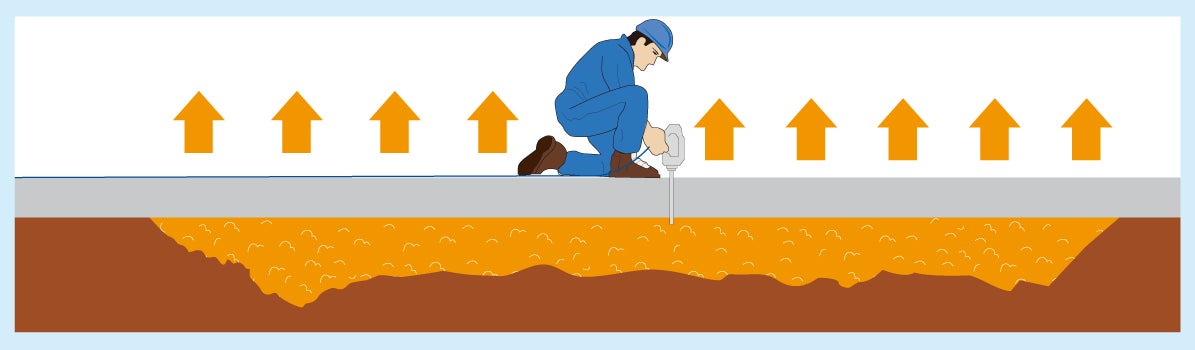 注入孔を開ける音や振動がさらに小さく、粉塵も少なくなりました。工事音や衛生面が気になる現場でも安心してご採用いただけます。