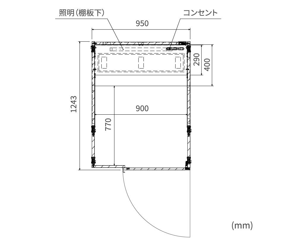 【サイズ】標準仕様 (外寸)W950×D925×H1,872 (内寸)W900×D894×H1,872 (約56kg)
