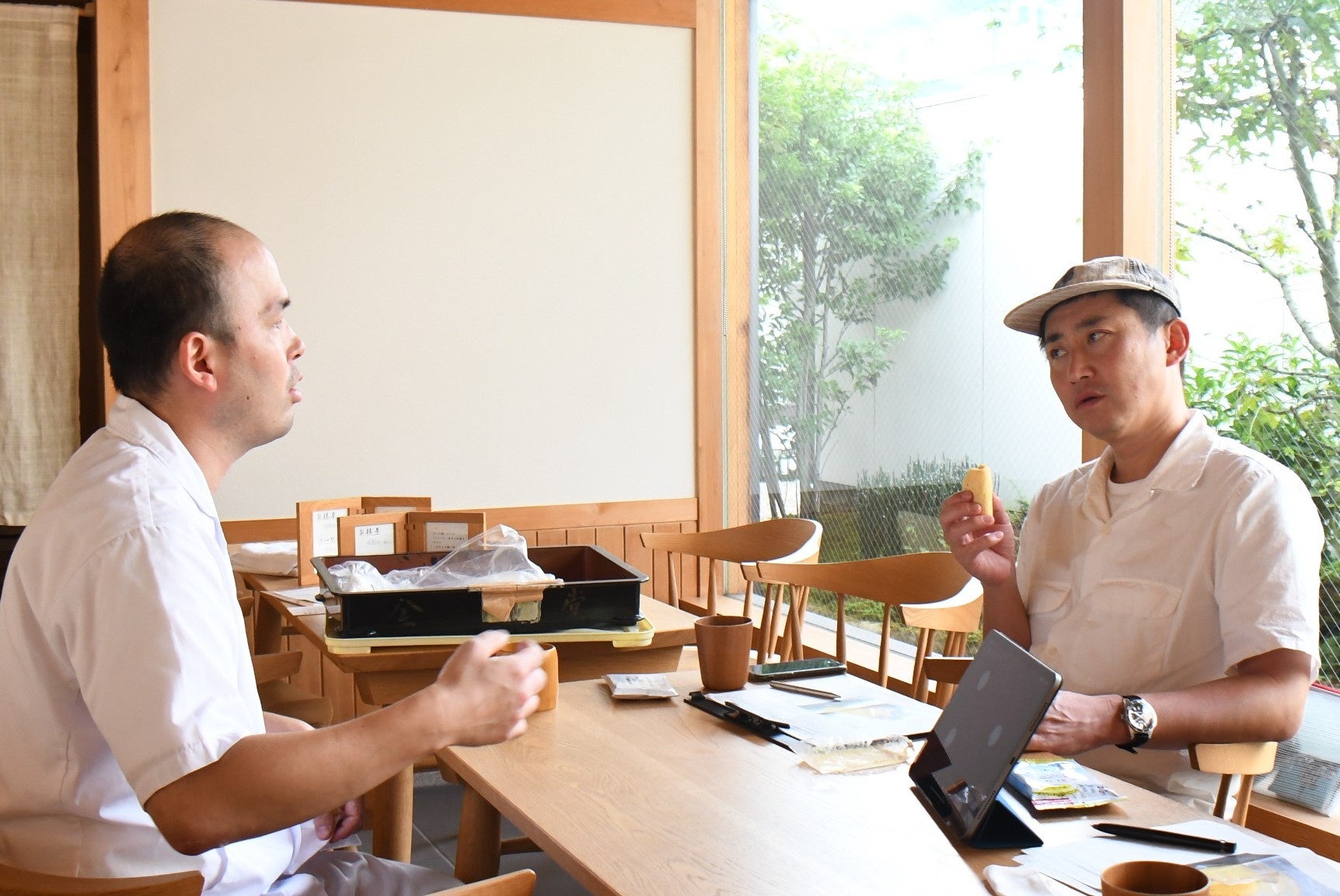 参画する市内事業者は7月に公募を行い、BEAMS JAPANのバイヤーの方々による選考を経て、和菓子店やビール醸造所、木材メーカーや研磨技術会社など、6つの事業者に決定いたしました。9月14日(木)、15日(金)には、BEAMS JAPANディレクターの鈴木修司さんが各事業者を訪問し、それぞれの事業者の強みや魅力をヒアリングしながら、商品のアイデアについて議論を行う、第1回開発会を実施いたしました。