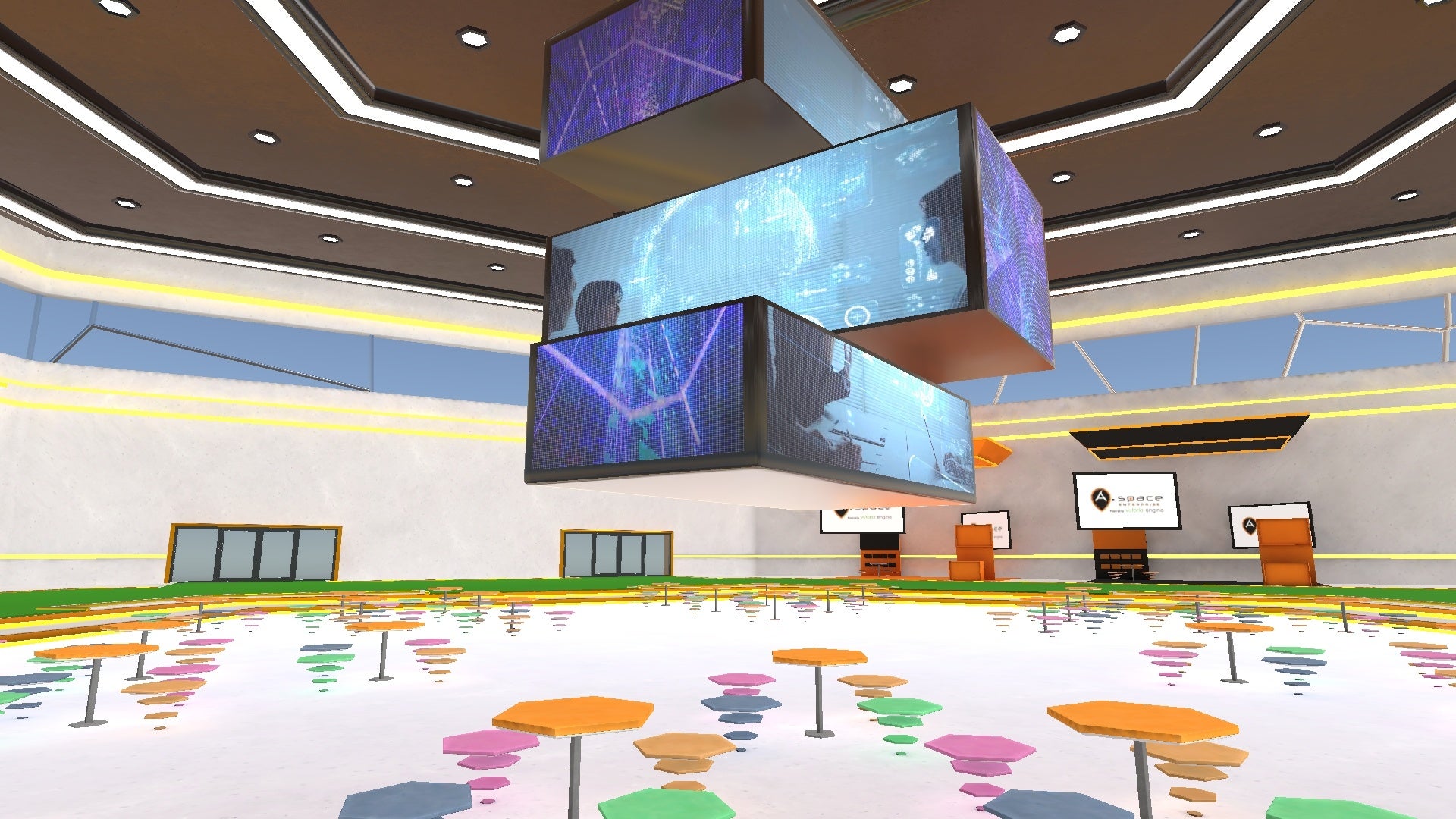 VR空間で展示会や講演会、セミナー、会議などを含む複合型のイベントを開催可能なVRコンベンションセンター(複合型VRイベント会場)「VRADE(ブレイド)」のシステム構築を行いました。