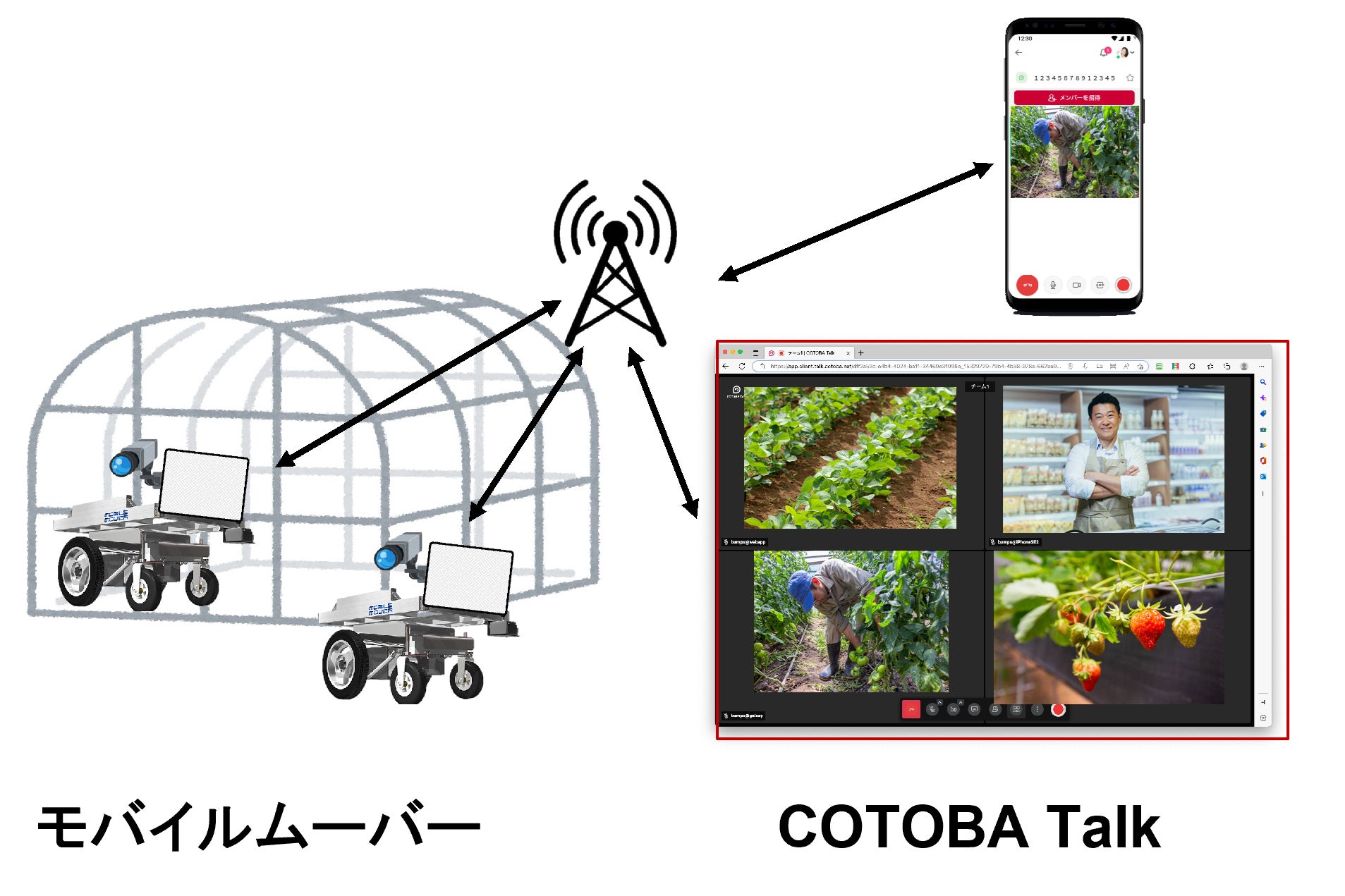 株式会社コトバデザイン(本社:東京都渋谷区、取締役会長・栄藤 稔(えとう みのる)、以下、コトバデザイン)は、農作業、搬送など屋外における多用途自動走行ロボット台車「モバイルムーバー」を軸としたモビリティ事業を展開する株式会社エムスクエア・ラボ(静岡県牧之原市、代表取締役 加藤百合子、以下、エムスクエア・ラボ)とモバイルネットワークを利用した超低遅延映像音声通信による遠隔操作技術の共同研究契約を12月8日に締結しました。12月15日、共同研究の目標を具現化した実験として、遠隔地の東京および 台湾からエムスクエア・ラボの和泉市アグリセンター(大阪府和泉市下宮町74番地の2)にあるモバイルムーバーの遠隔操作を行い、この作業を仙台、静岡にて共同視聴する実験を行いました。