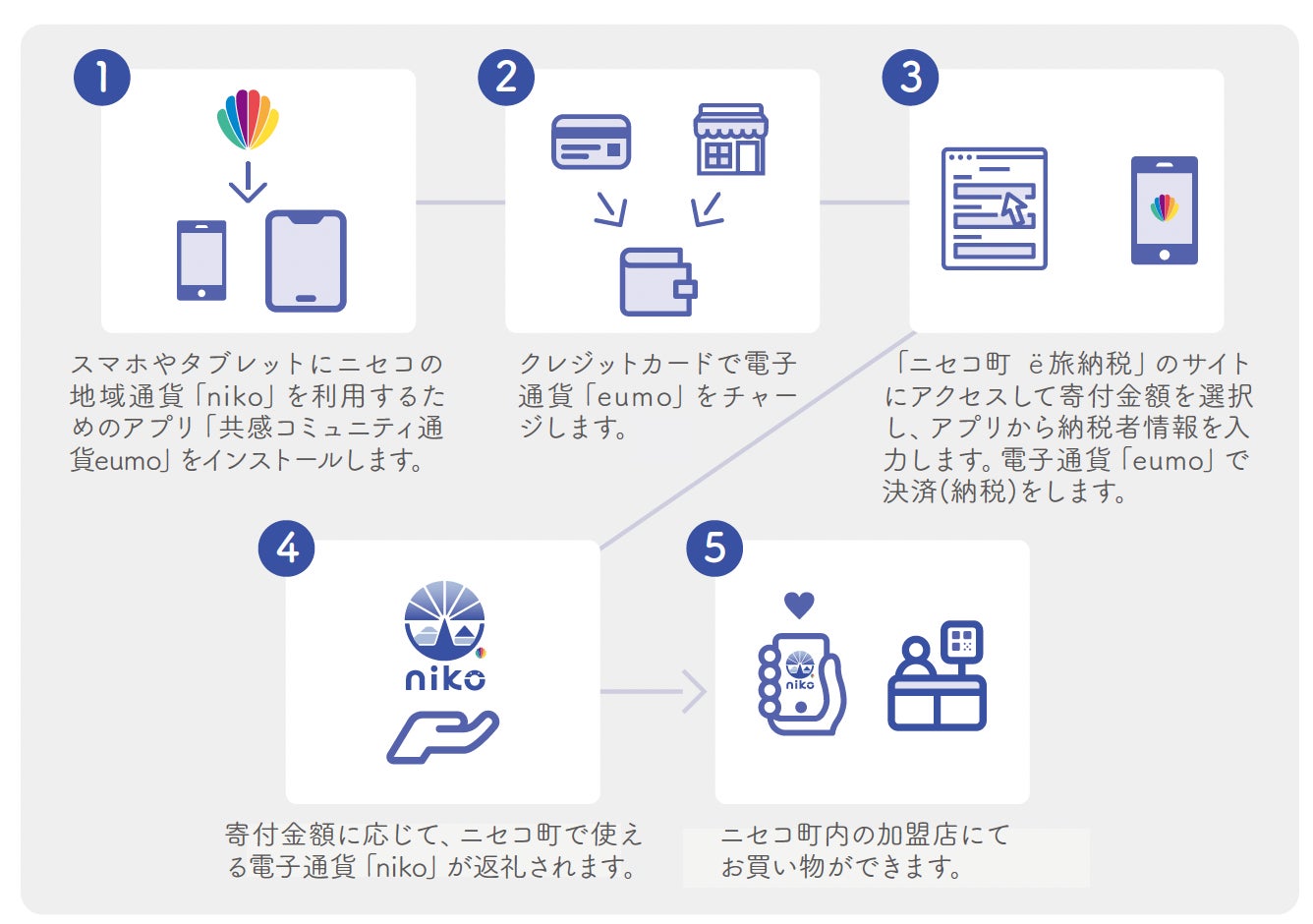 株式会社ONNEA(本社:北海道ニセコ町/代表取締役 新井和宏)と非営利株式会社eumo(本社:東京都港区/代表取締役 武井浩三)は、北海道ニセコ町において、『共感コミュニティ通貨eumo(ユーモ)』のプラットフォーム(以下、eumoアプリ)を用いた、ё旅納税(いいたびのうぜい)のサービスを開始いたしました。