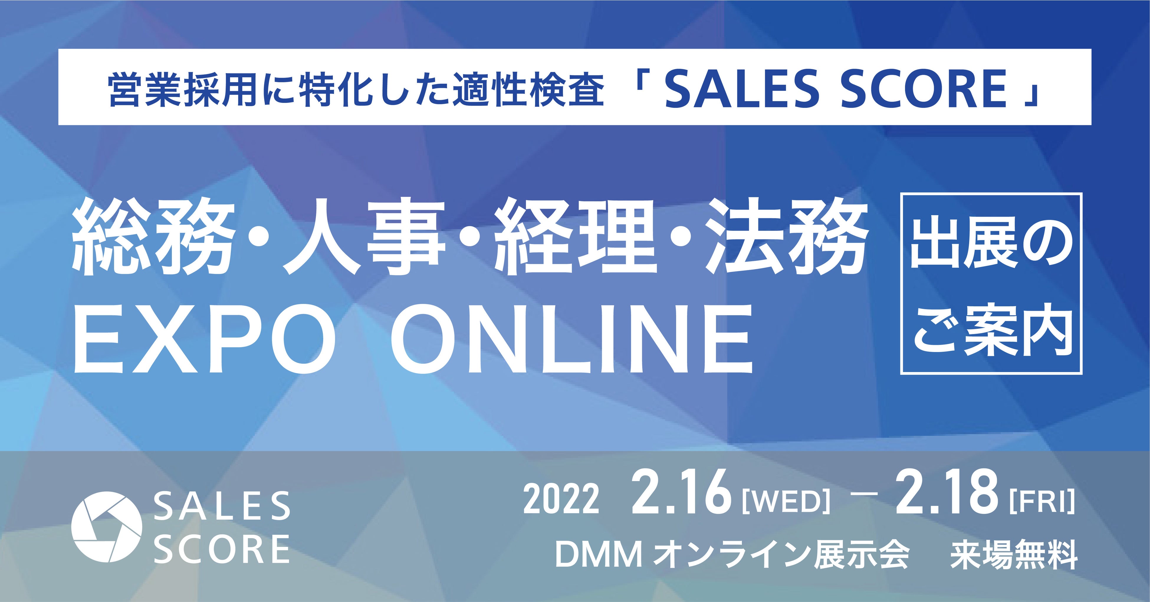 営業職向け適性検査「SALES SCORE」はDMMオンライン展示会『総務・人事・経理・法務 EXPO ONLINE』に出展致します