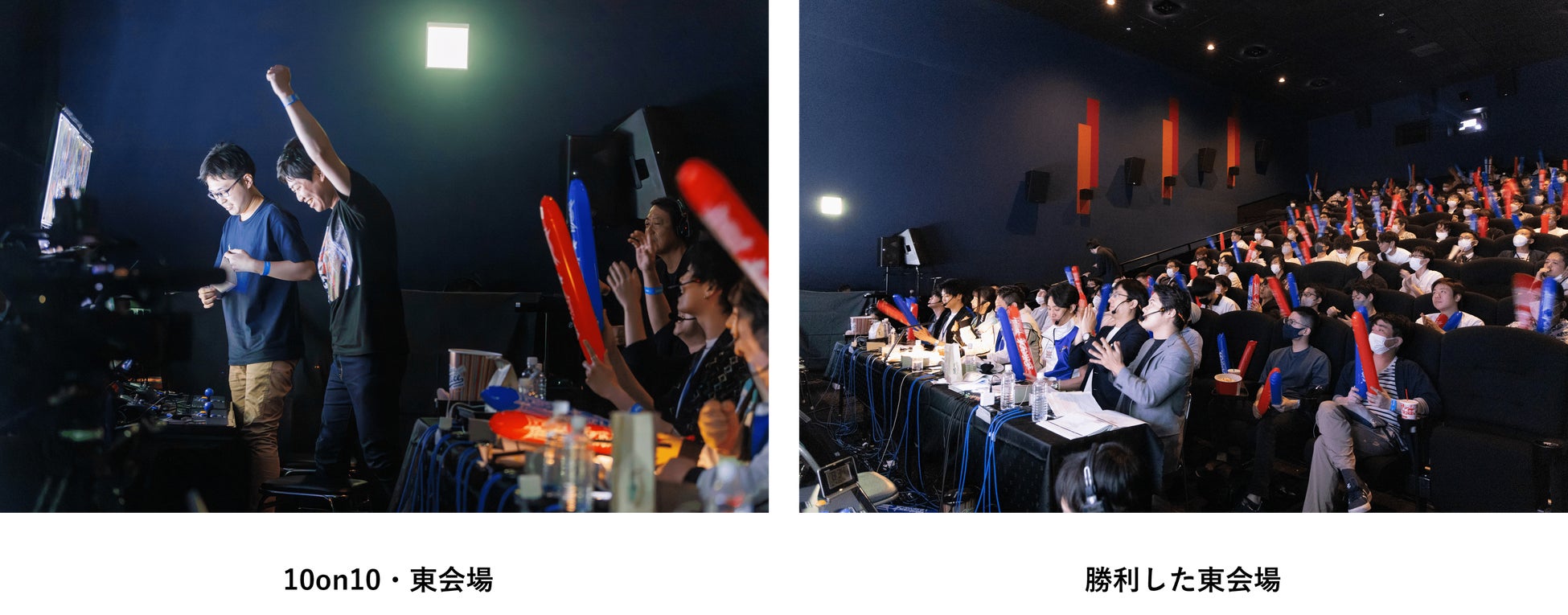 後半に行われたのは「10on10」。前日に東京と福岡にあるアミューズメント施設にて行われた前夜祭を勝ち上がった5組10名による団体戦です。