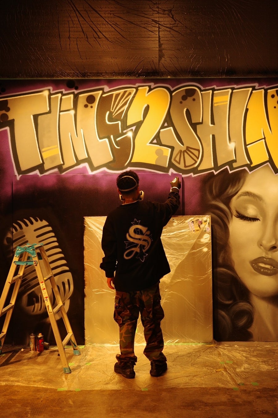 SAUNA PASSION ROOM2の壁面にスプレーで直接描いたTTNEのブランドクリエイティブロゴを新たに描き下ろし制作しました。