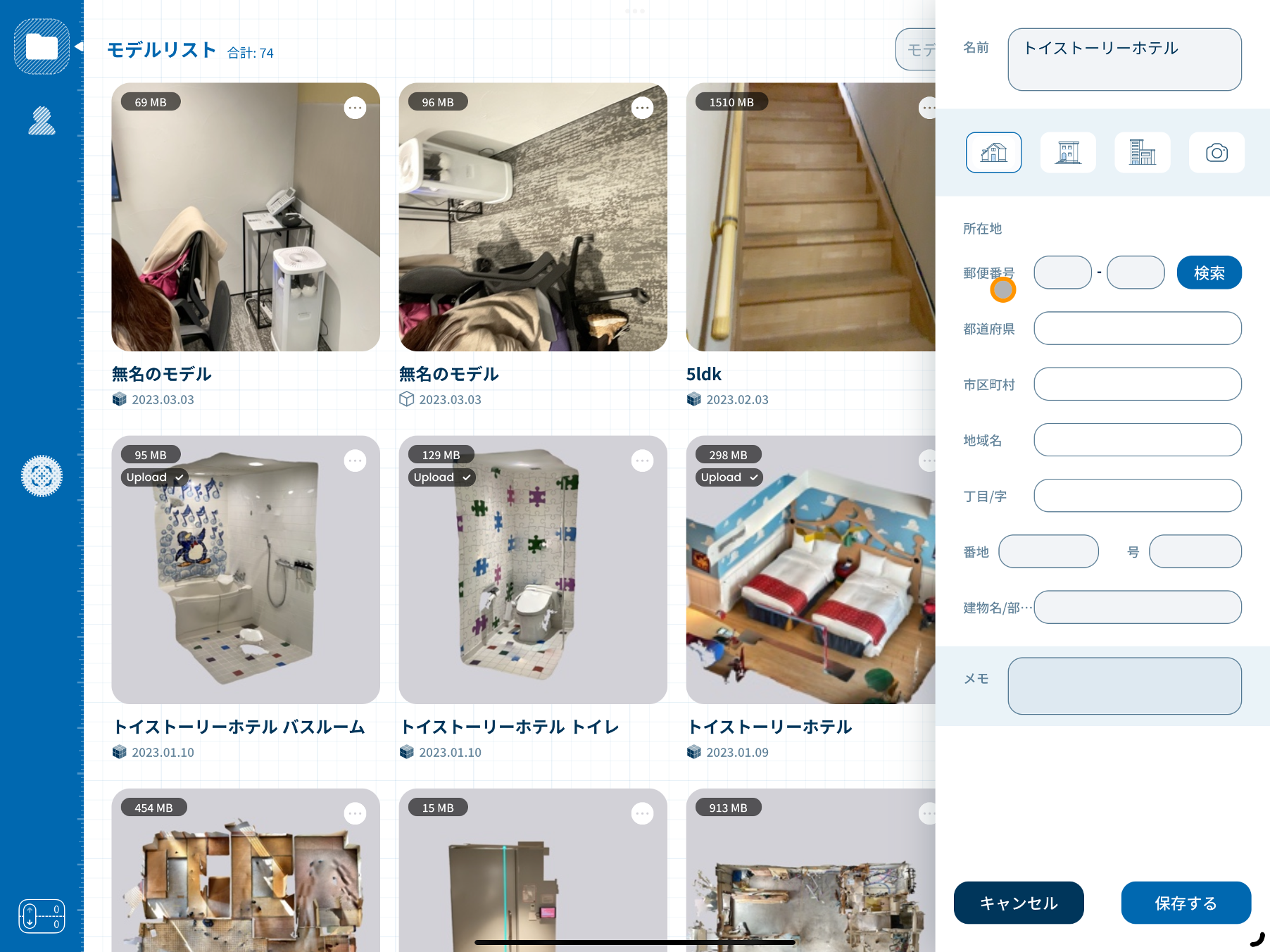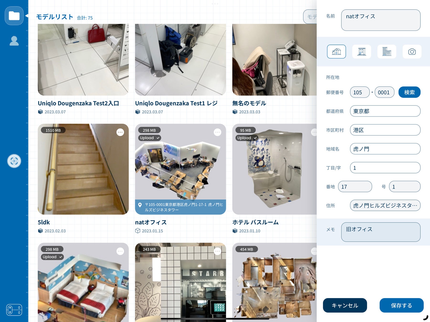 ・3Dモデル情報の入力機能:モデルリスト画面*で住所等の情報を入力することができます。