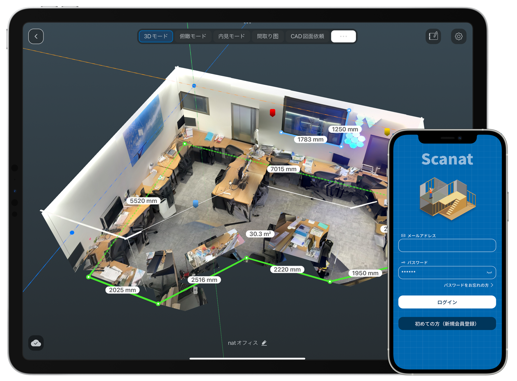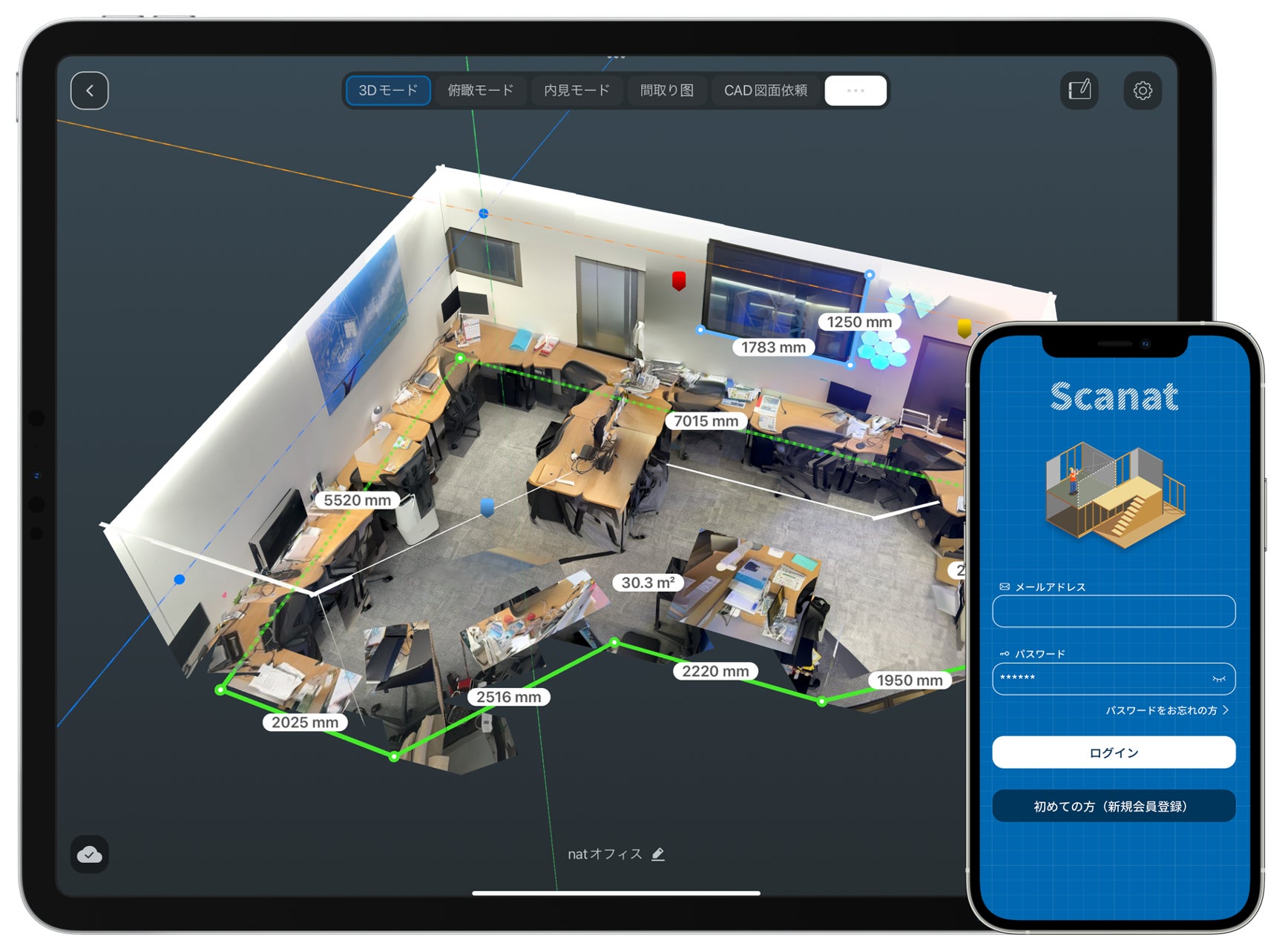 ScanatはiPhone/iPadでスキャンするだけで、同種アプリ内最高の精度での計測(mm単位)が可能なiOSアプリです。簡単な操作で、屋外や屋内などの空間を高精度に記録することができます。これまで空間に関するやりとりは図面や写真、ビデオのみでしたが、Scanatはデジタル空間の構築を通じて、「まるで現場にいるかのような、現場をそのまま持ち帰るような」体験を実現します。2022年1月末のリリース以降、現在は中小工務店から大手上場企業まで、全国37都道府県、累計200社を超えるお客さまに幅広くご利用いただいております。