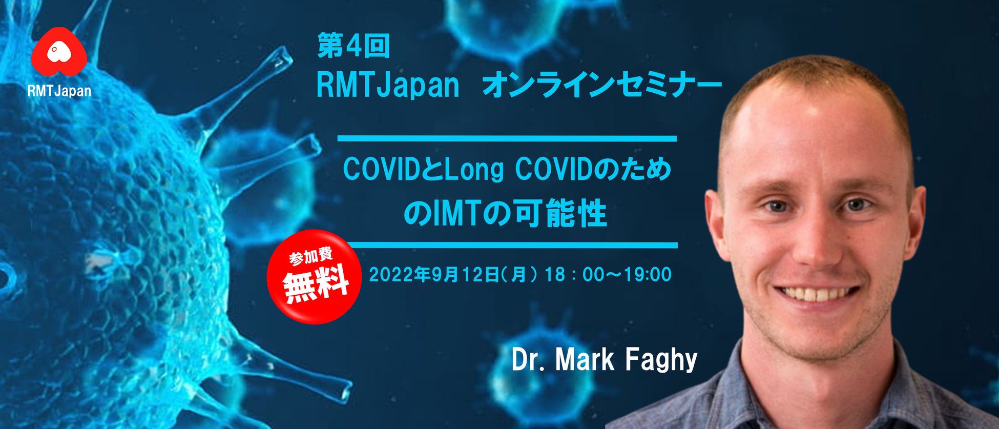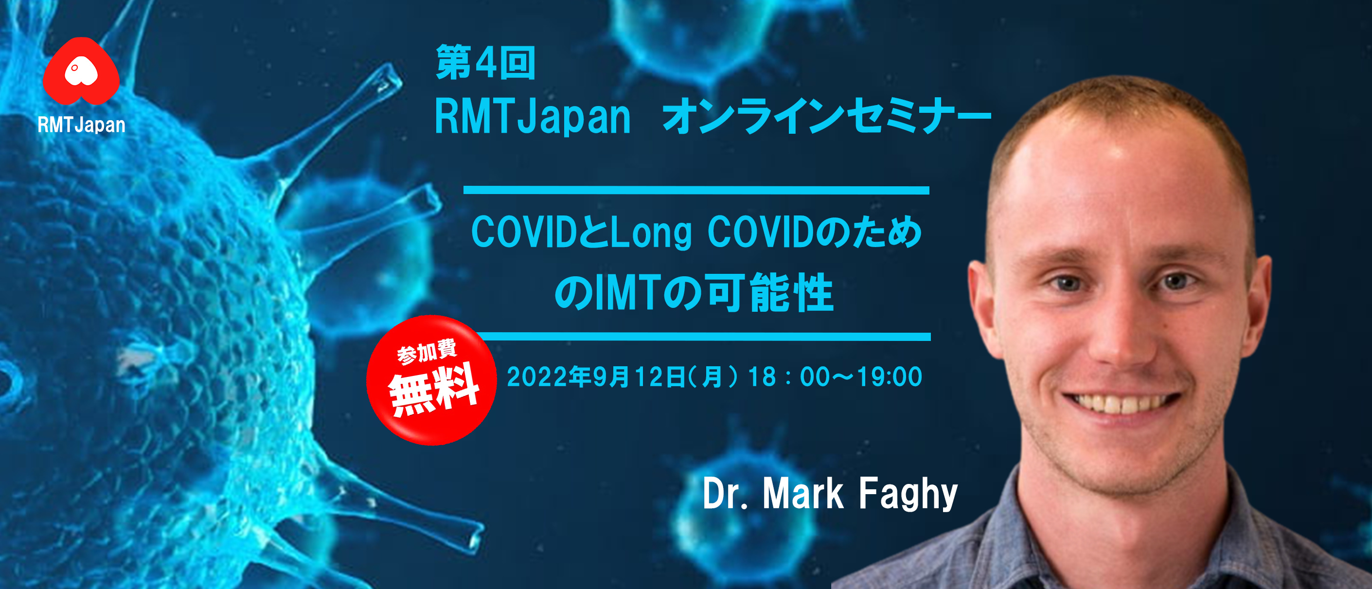 今回はその活動の一つとして、2022年9月12日(月)18:00より、イギリスのダービー大学に所属するマーク・フェヒー博士を講師にお迎えし「COVIDとLong COVIDのためのIMTの可能性」をテーマにしたオンラインセミナーを実施いたします。