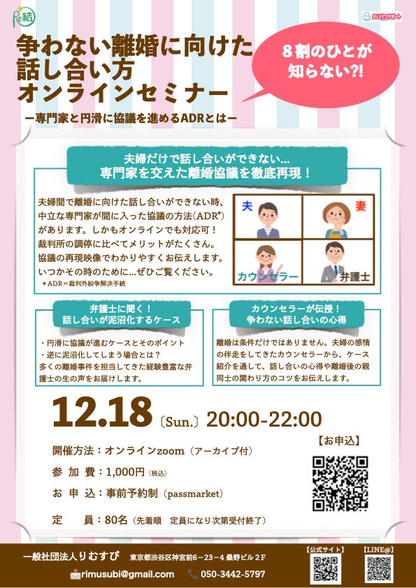 8割のひとが知らない?! 争わない離婚に向けた話し合い方オンラインセミナー