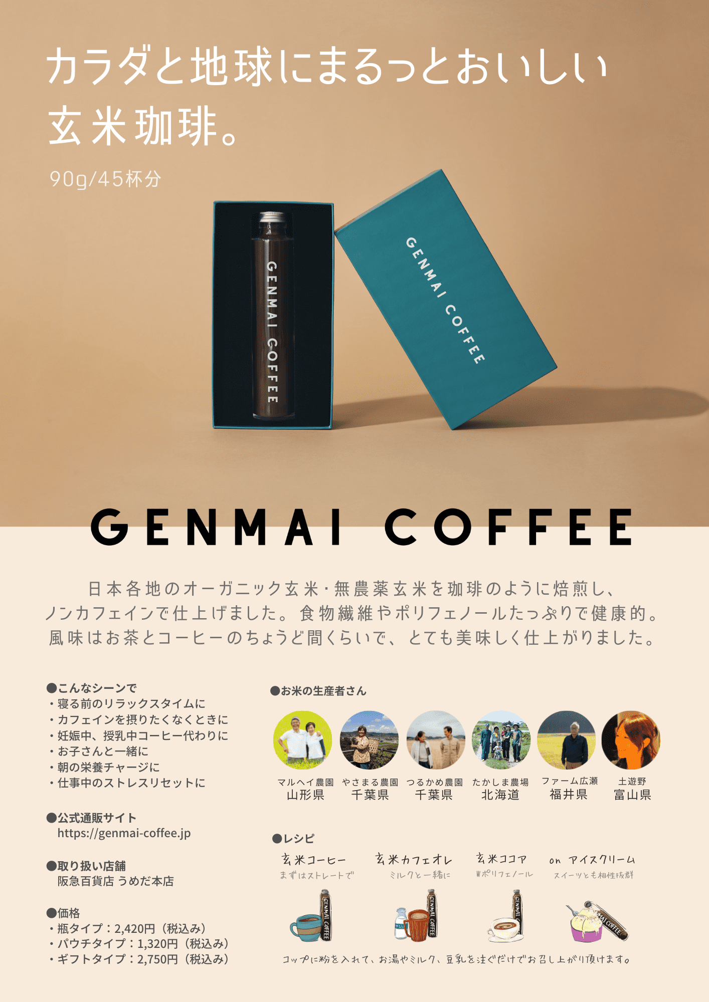 『GENMAI COFFEEでエシカルな体験を』日本各地のオーガニック・無農薬玄米を珈琲のように焙煎し、ノンカフェインで仕上げました。|ECサイトでの販売を開始