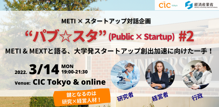 イベントタイトル:イベントタイトル:METI x スタートアップ対話企画 “パブ☆スタ(Public × Startup)”シリーズ #2 大学発スタートアップや研究開発型スタートアップの経営人材不足を解決するためには!