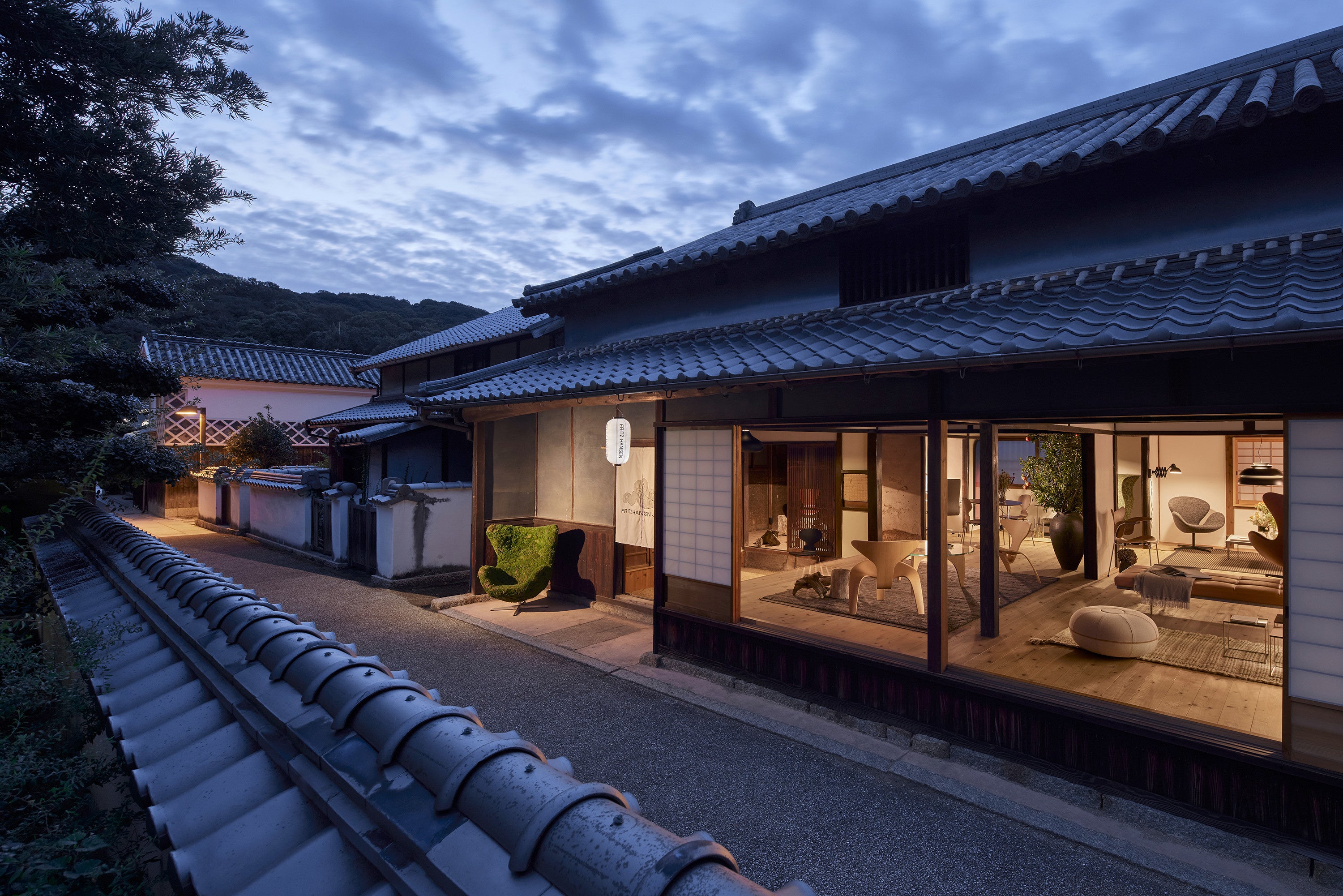 「フリッツ・ハンセン庵」は、国の重要伝統的建造物群保存地区に選定されている笠島というエリアにある江戸時代の古民家を、フリッツ・ハンセンのコレクションで演出し、日本の建築とデンマークの名作家具たちの融合をお楽しみいただける展示です。本島を訪れる人々の休憩所として会期中は毎日オープンします。