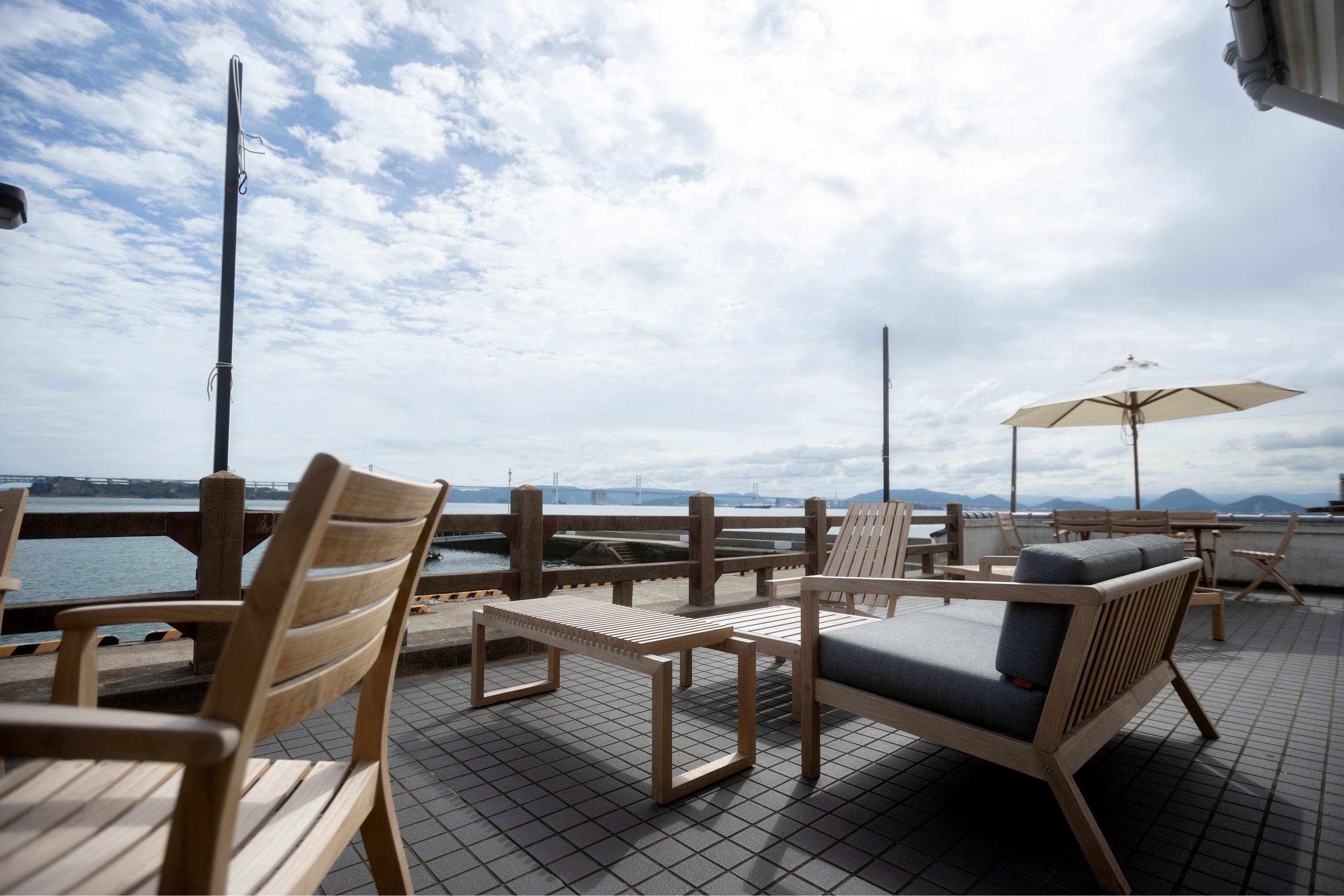 本島スタンドの店内ではフリッツ・ハンセンの家具、テラスではフリッツ・ハンセンのアウトドアコレクション、スカゲラックの家具をお楽しみいただきます。本島スタンドの隣にあるフェリーの待合室にもフリッツ・ハンセンの家具を設えます。