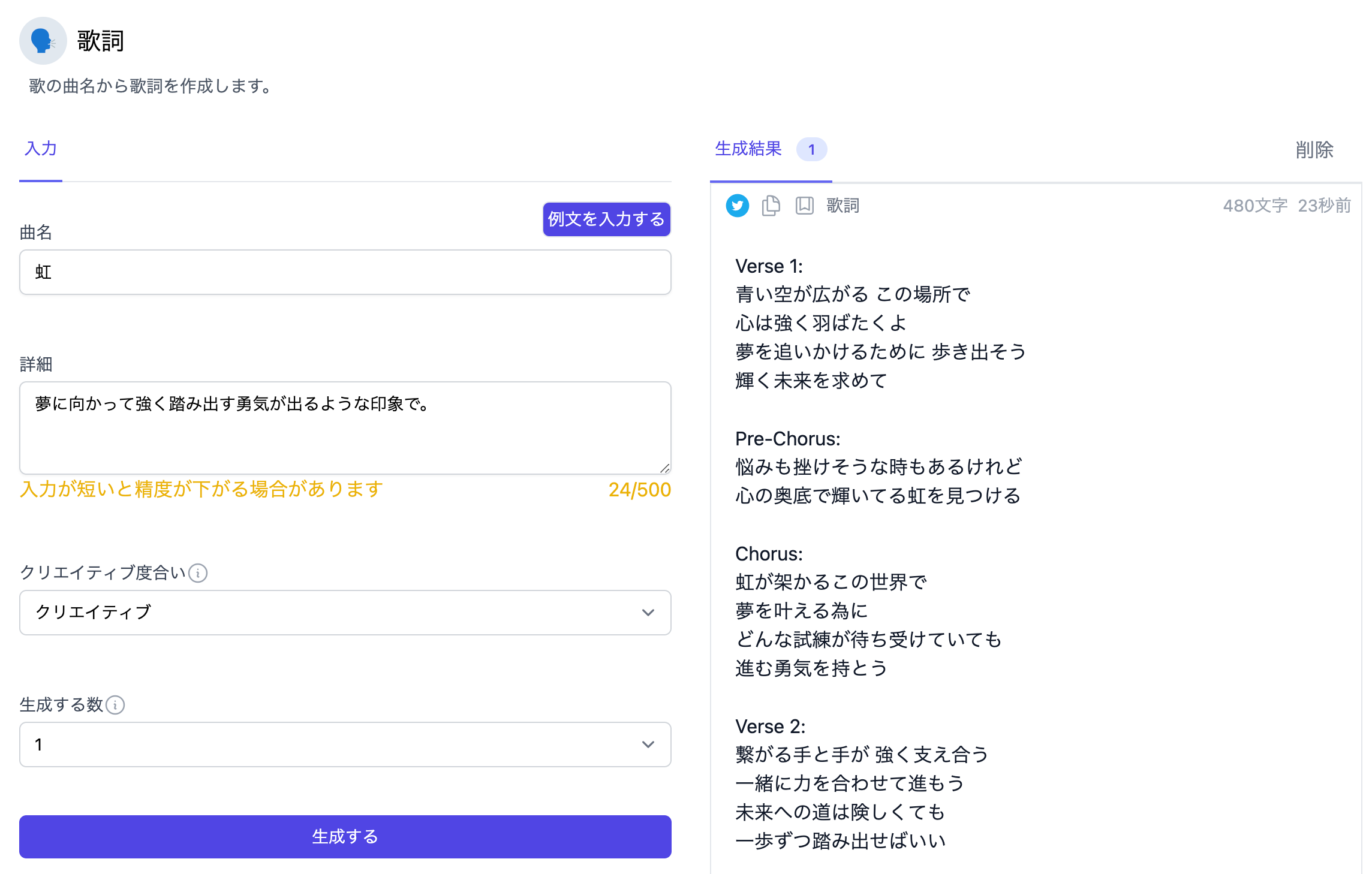 3つ目は、変わり種ですが、「歌詞」を生み出すテンプレートです。