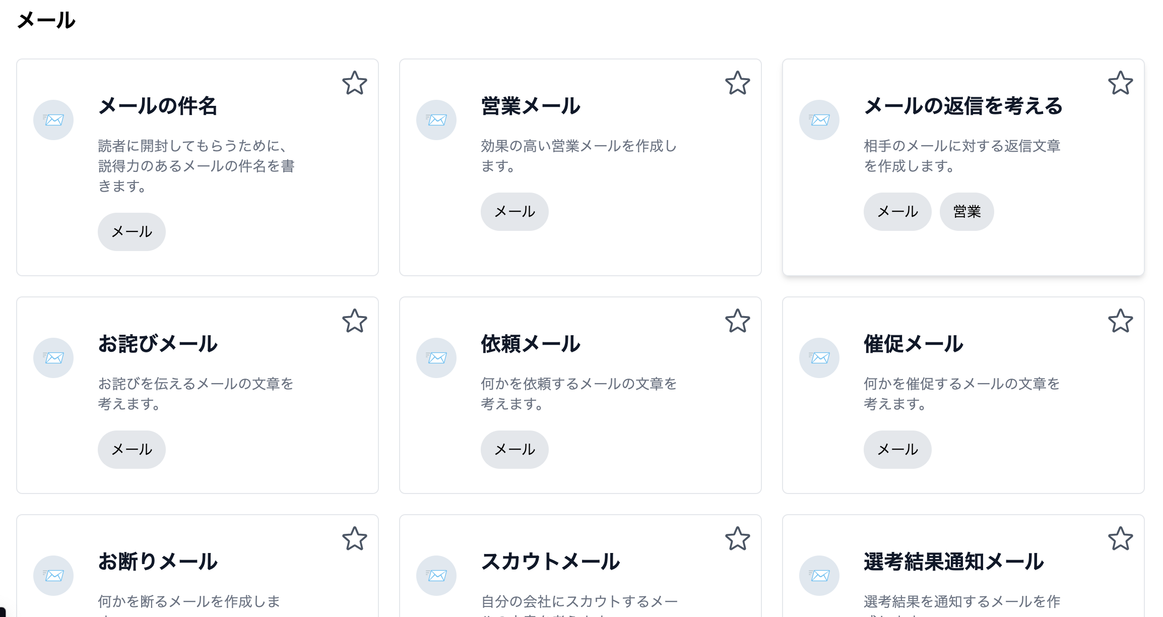 テンプレートの追加により、従来よりもさらに幅広い用途に対応した文章を生成することができます。