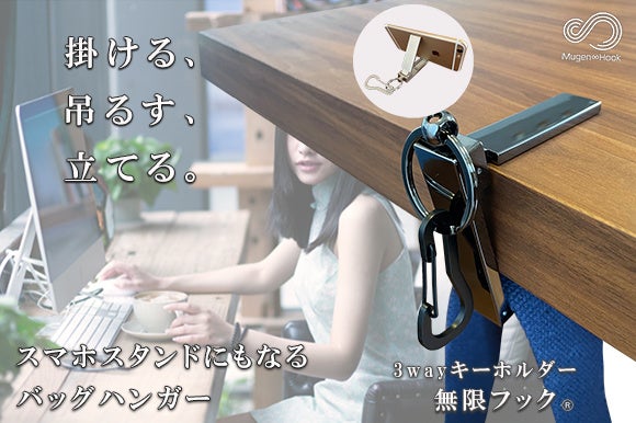 新商品/"バッグハンガーやスマホスタンド”になる3wayキーホルダー〈 無限フックPlus〉パワーアップして登場!クラウドファンディングmachi-yaで先行販売開始!