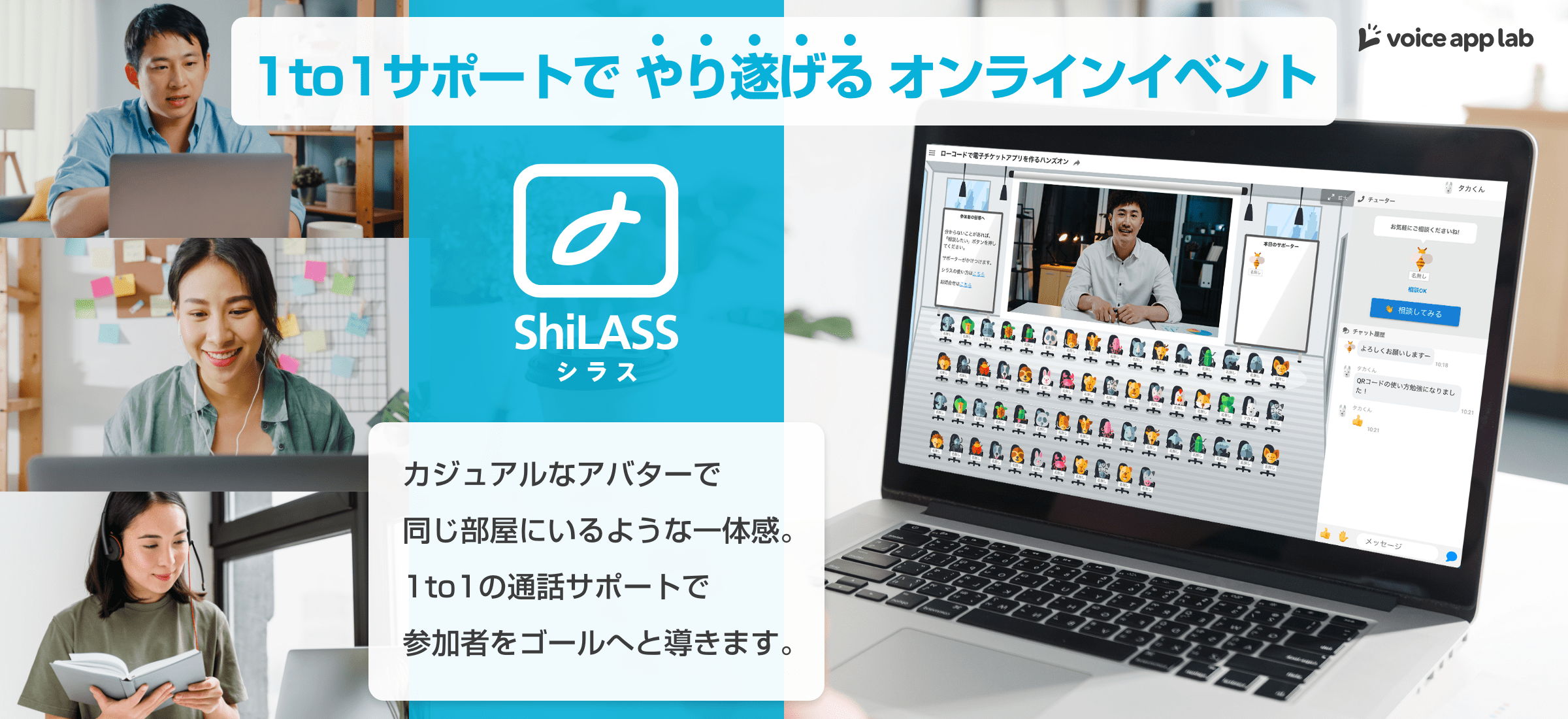 ボイスアップラボ株式会社(京都市、代表取締役:小林貫)(以下、ボイスアップラボ)は、オンライン体験イベントで参加者サポートが難しいという課題を解決すべく「1対1のサポート機能」を搭載したオンラインイベントツール「シラス(ShiLASS)」のベータ版をリリースしました。