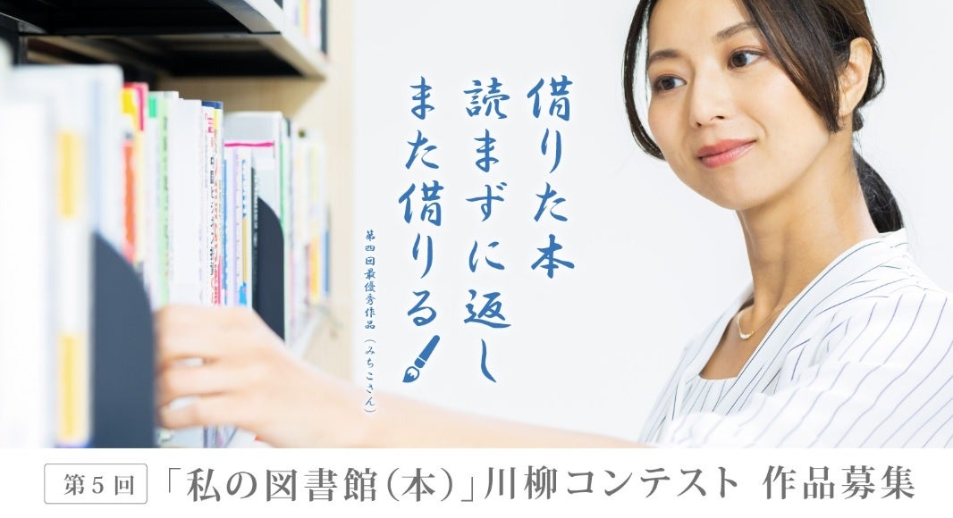 第5回『「私の図書館(本)」川柳コンテスト』の募集を開始いたします!! コロナ禍も収束に向かう中、本好きのみなさんはこの数年間、ステイホームの時期もあり、読書量が増えたのではないでしょうか? 読書の楽しさや、図書館を利用できる事の便利さや喜びなど、みなさんの「本」や「図書館」にまつわる想いをぜひ川柳にしたため、お送りください!