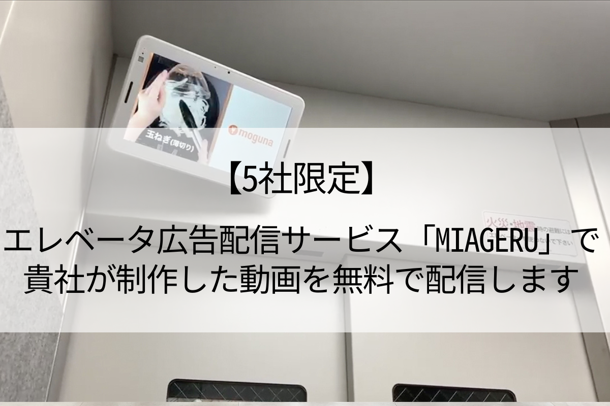 【動画制作企業のパートナーを募集!】エレベータ内モニターによる動画広告配信サービス「MIAGERU」で貴社が制作した動画を無料で配信します