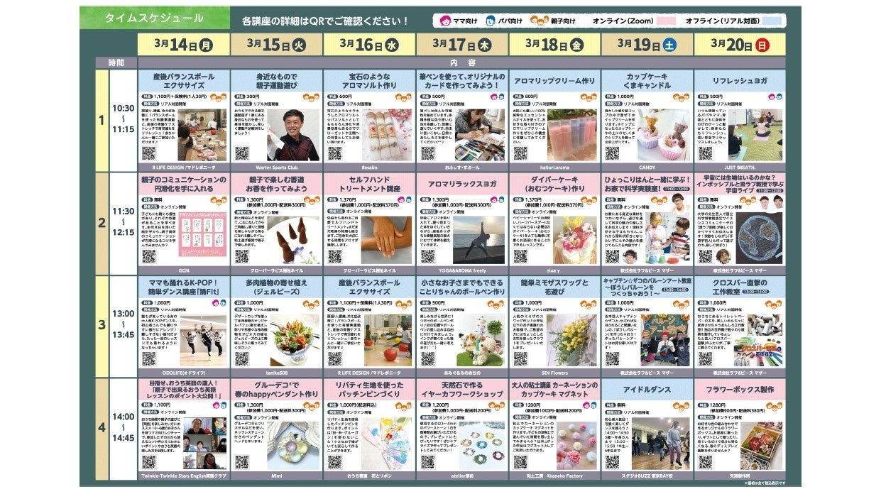 3月14日(月)〜20日(日)28講座子育て世代を中心に様々な世代への学びを提供するパートナー企業と連携した学習プログラム