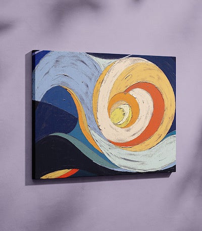 眠れない深い夜、揺れる海に浮かぶ静かな月を大胆な筆遣いと強いコントラストの色合いで表現しました。まず目を引くのは、濃紺の海と夜空に対する月の明るさです。月光が波に反射し、海面に輝く光の道が描かれています。深い夜のコーヒーでもぐっすり眠れるように。
