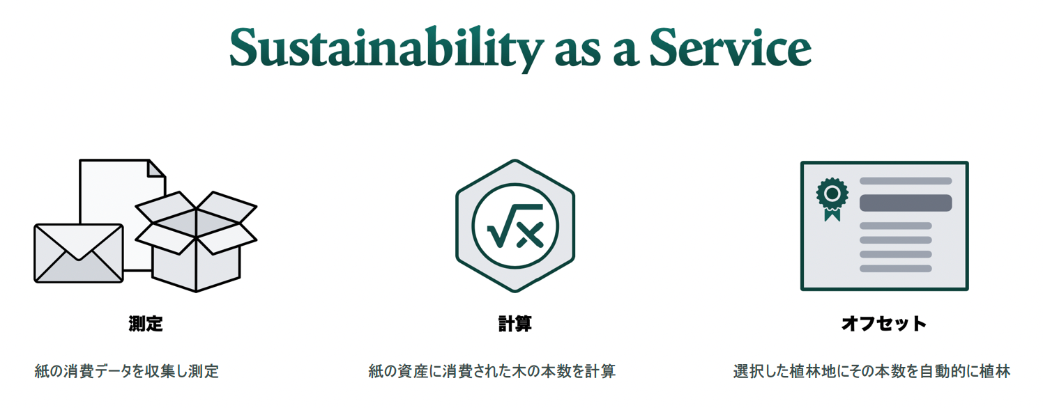 「PrintReleafは、企業活動に使われる紙や繊維素材の消費量に相当する森林を自動的に再生し、紙やパッケージング製品および製造工程などから排出される二酸化炭素排出量を相殺することで、責任ある企業の持続可能性な目標の達成を支援します。また、企業が環境にプラスの影響を与え、ブランドの差別化を促進することを支援します。