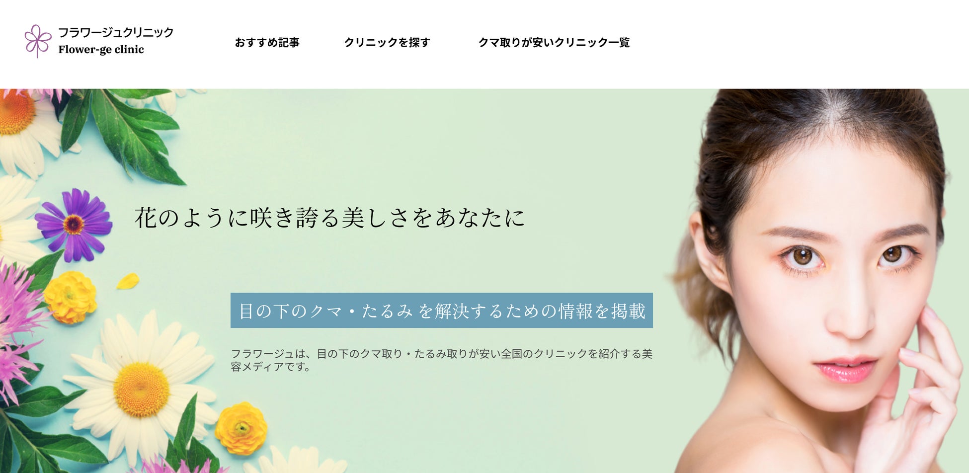 目の下のクマ取り・たるみ取りが安いクリニックを地域別で紹介するサイト「フラワージュ」を立ち上げました!