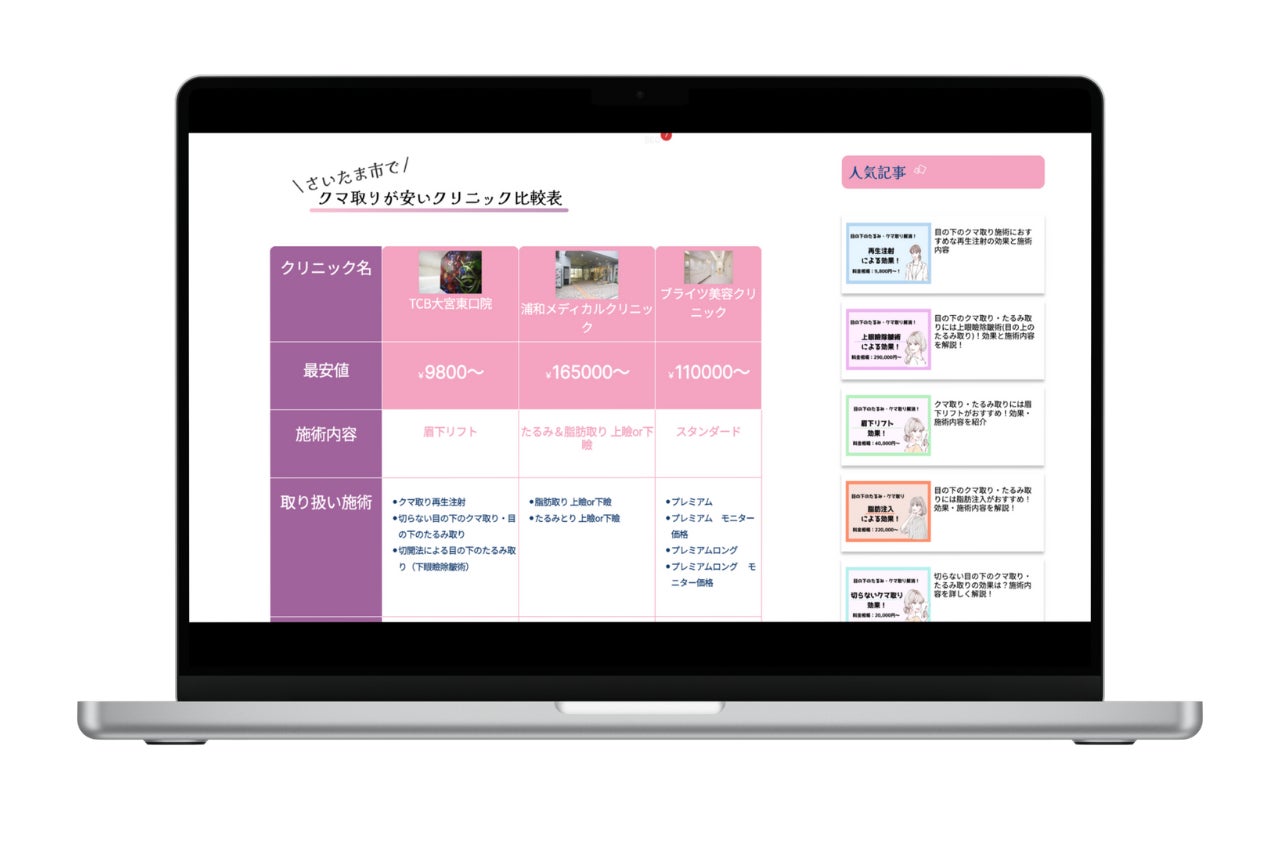 フラワージュでは、お得なキャンペーンを実施しているような大手クリニックを対象に、クリニックの詳細ページを作成しています。