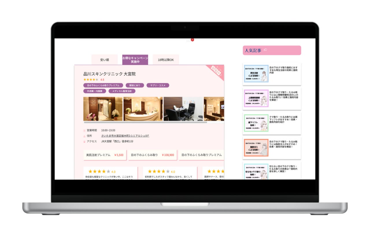キャンペーンが豊富なクリニックを詳しく掲載する詳細ページ