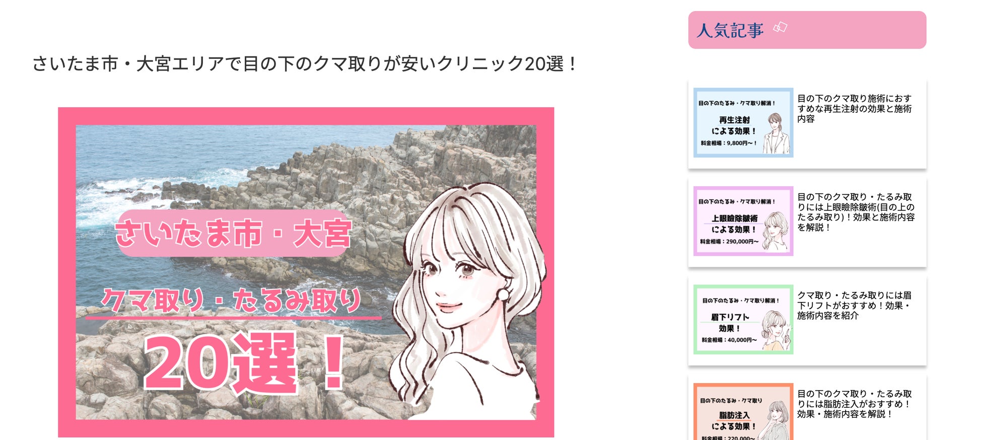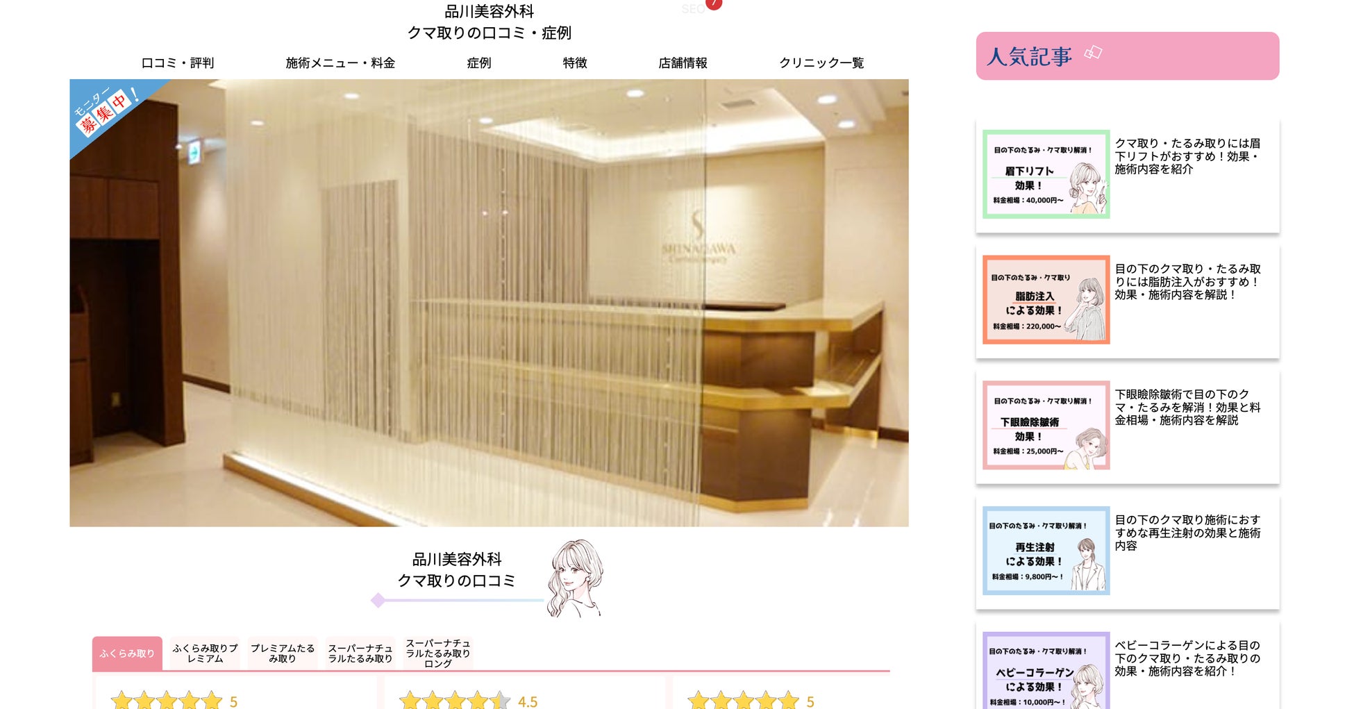 詳細ページでは、施術ごとの細かな口コミ、症例写真、副作用、値段を掲載しています。