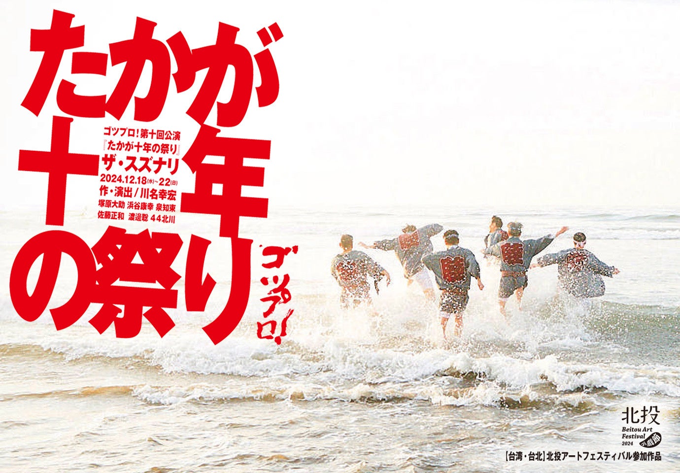 四⼗代で劇団を⽴ち上げ、本多劇場進出、地⽅公演、海外公演の実現と、毎年挑戦を繰り返してきたゴツプロ!も、いよいよ⼗回公演を迎えます。そんな我々が歩んできた軌跡と、新たな北投区との出会い、そしてこれまで培ってきた台湾の仲間たちとの交流がこの作品で融合します。