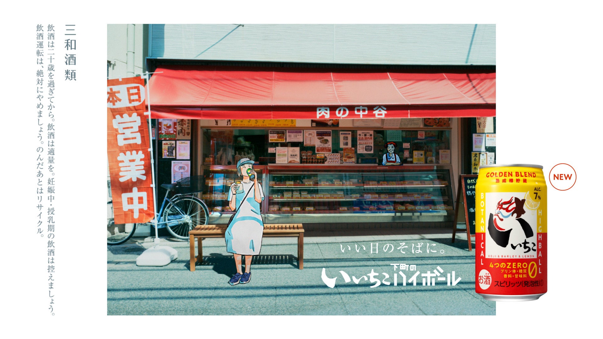 * 新CM 『なにも起こらない海辺』篇、『なにも起こらない肉屋のコロッケ』篇は、『いいちこ下町のハイボール』が寄り添いたい「お酒のあるいい時間」を漫画家の今日マチ子さんのイラストで表現しました。