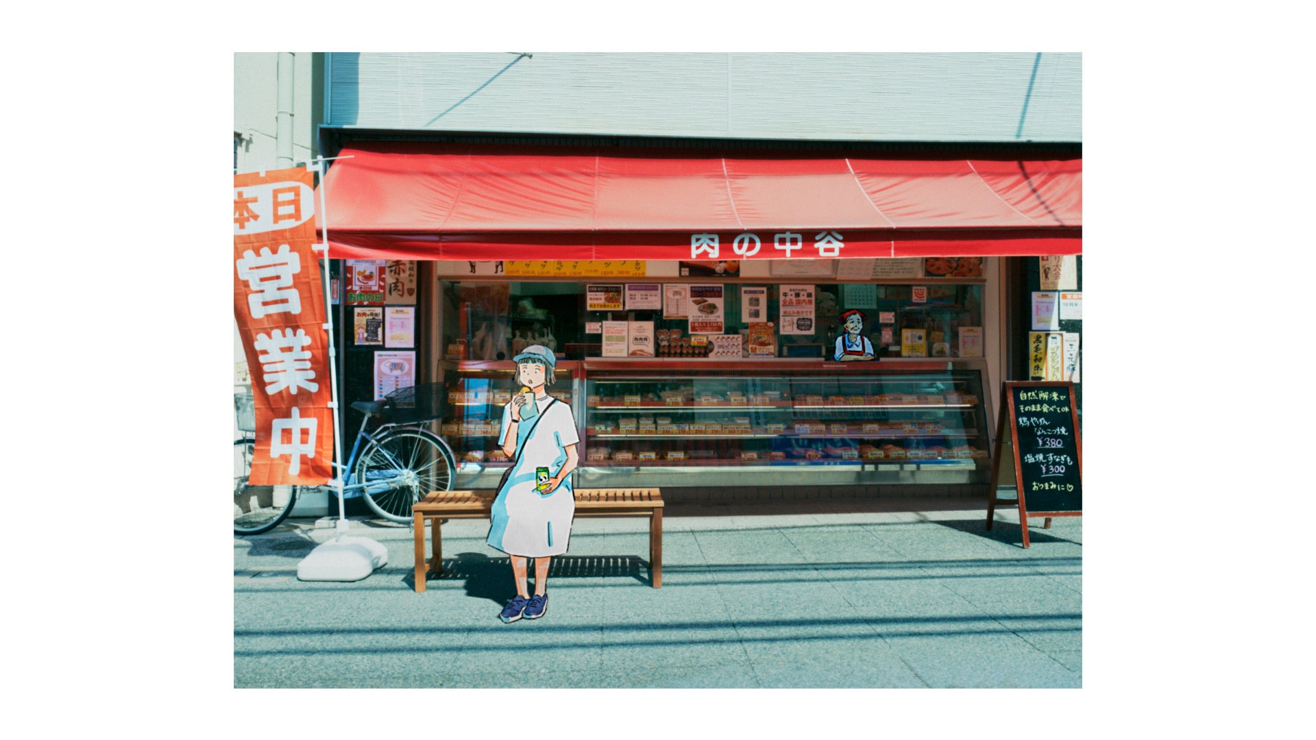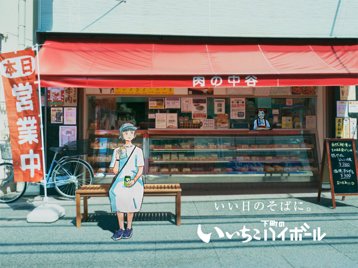 ある晴れた日、近所の商店街にあるお肉屋さんの前に腰をかける若い女性。コロッケ屋さんのおばあちゃんに温かい目で見守られながら、女性は『いいちこ下町のハイボール』を片手に揚げたてのコロッケを頬張り、ただただ“いい時間”を過ごします。