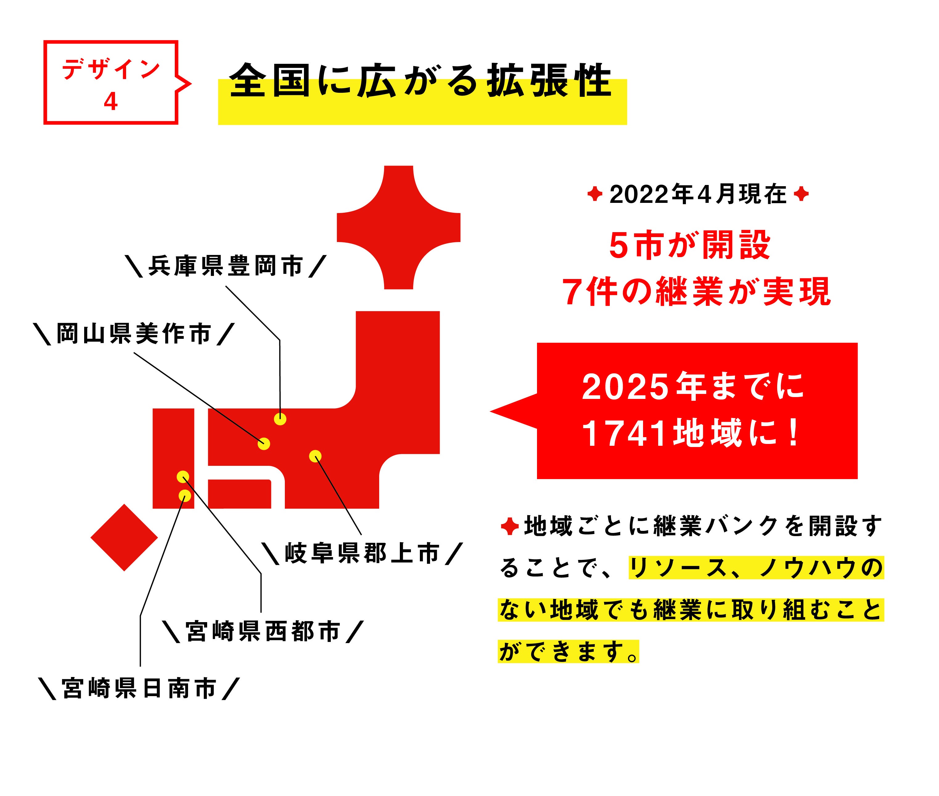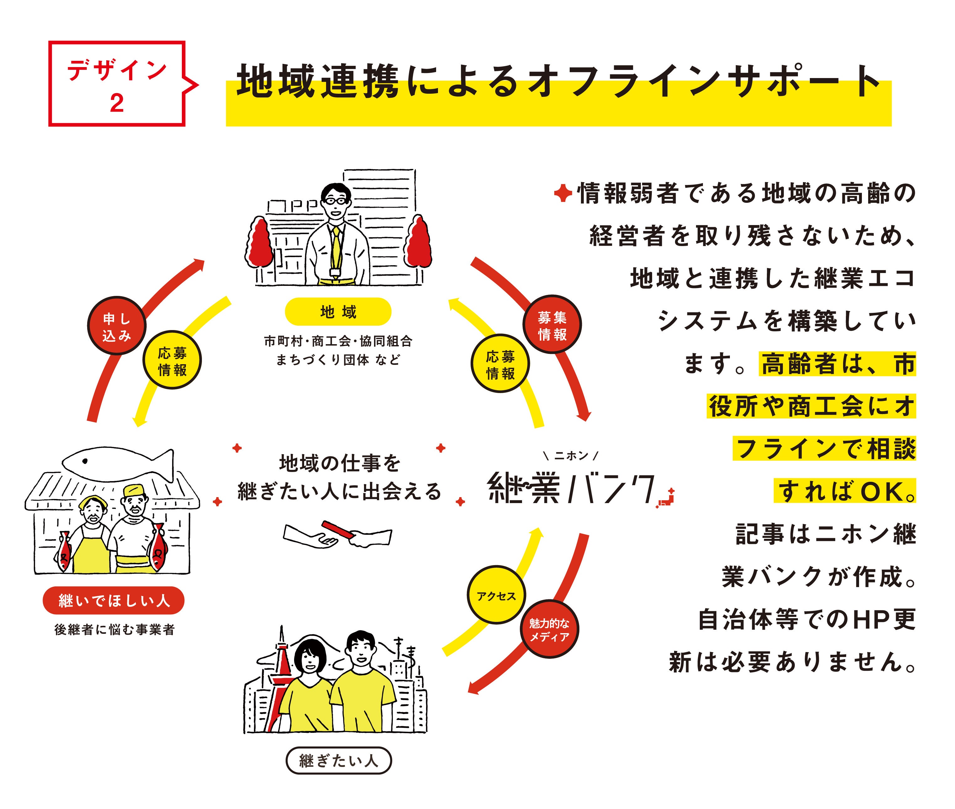 ニホン継業バンクでは、地域の後継者課題を解決するための4つのデザインで、夢を実現させます。