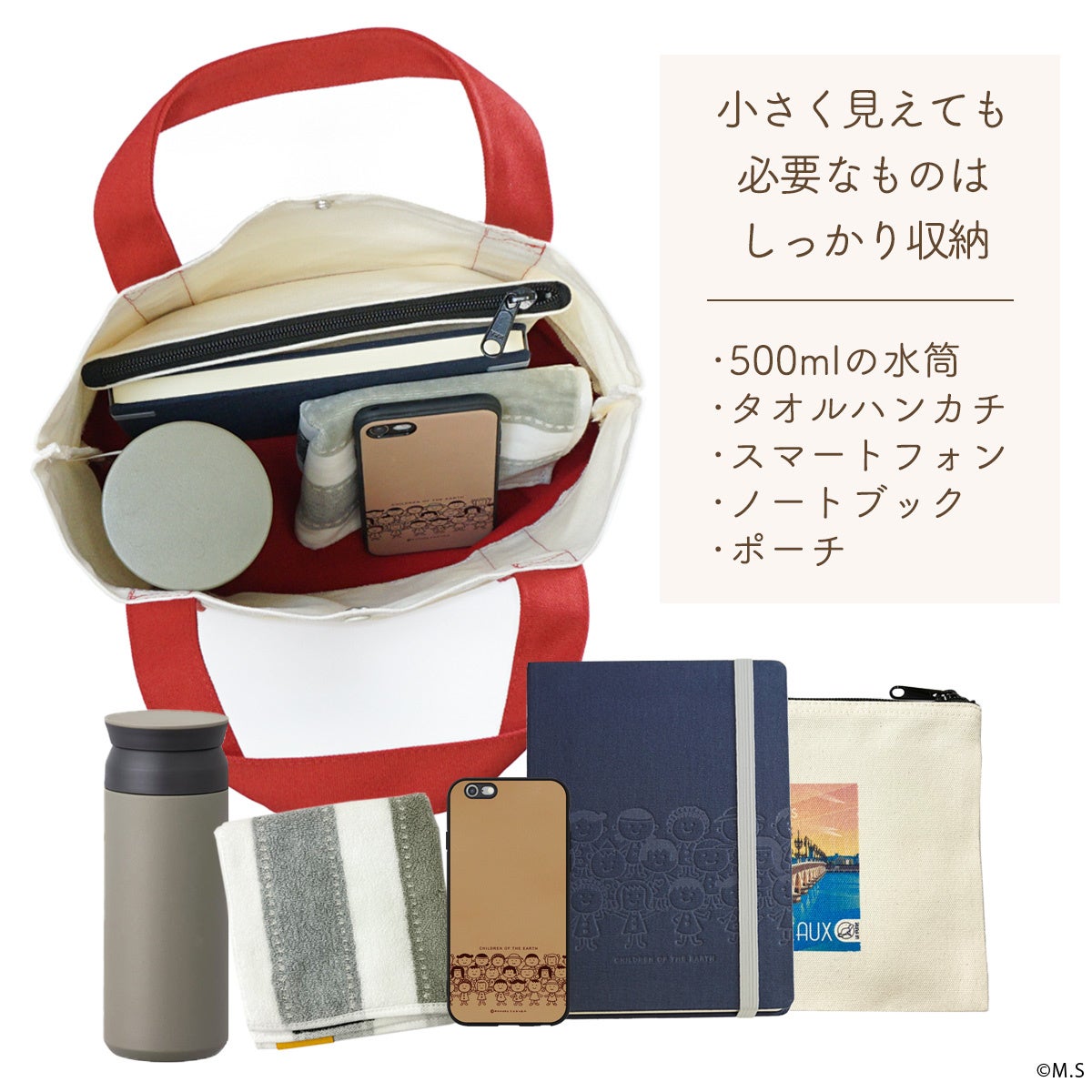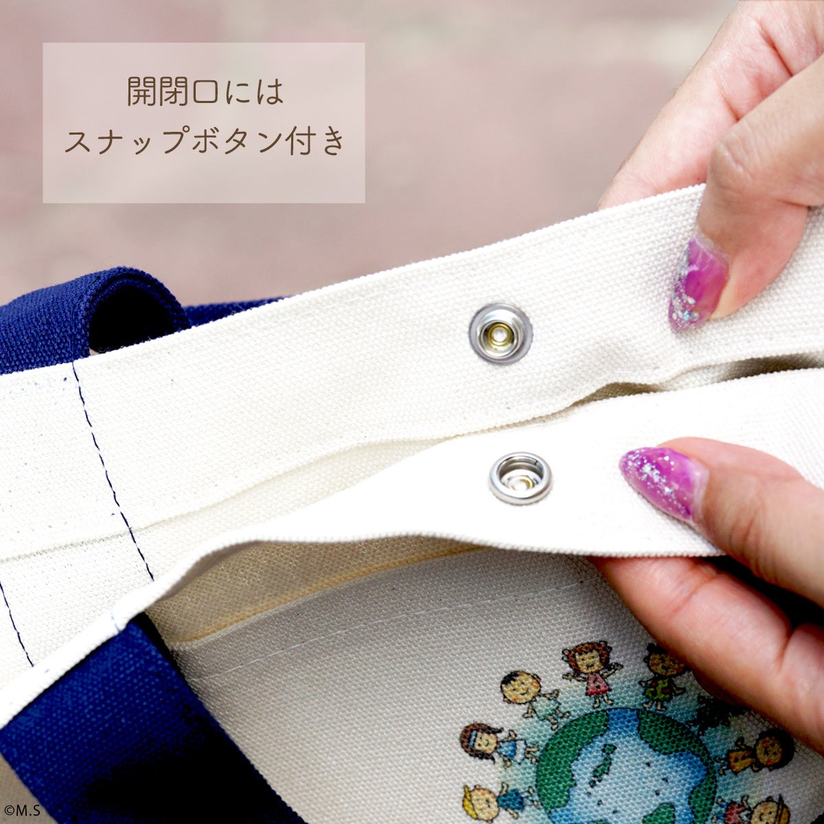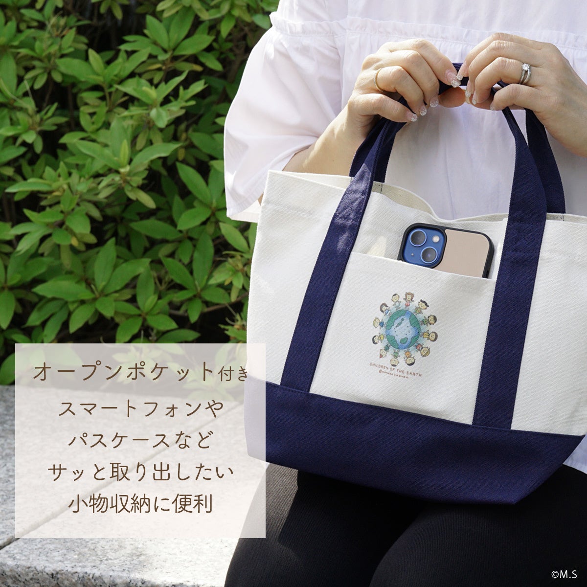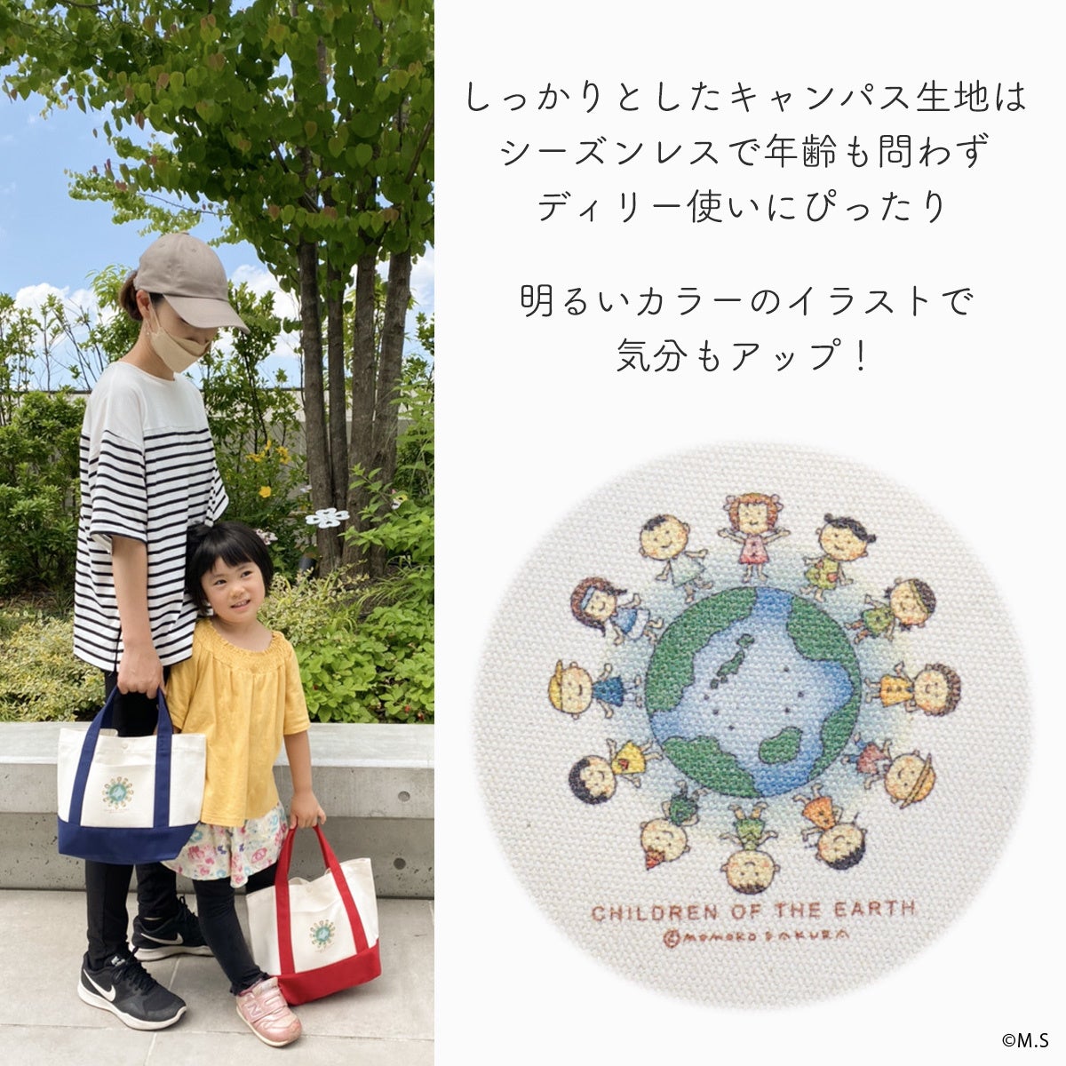 さくらももこが、腕時計の文字盤用にデザインしたイラストで人気の「地球の子供たち」シリーズ。お客様のご要望にお応えして、カラーミニトートバッグが新発売!「地球の子供たち」というタイトルのとおり、さくらももこらしい可愛いタッチの子供たちが仲良く地球を囲んでいます。子供たちの表情が可愛い、カラフルなイラストが楽しいトート。キャンバスのしっかりとした生地で、シーズンレスで年齢も問わず、お散歩やお買い物などに幅広くお使いいただけます。